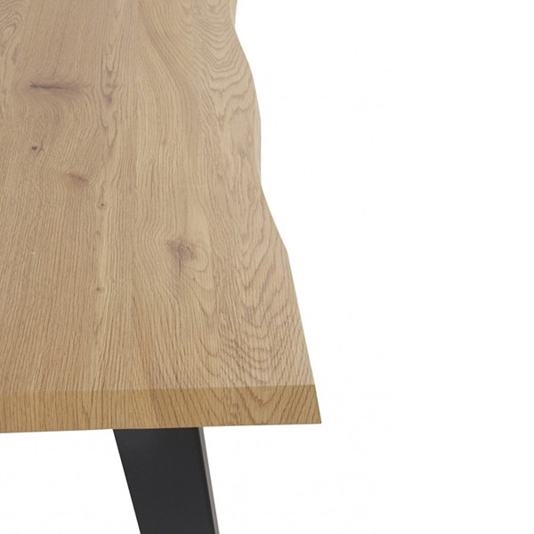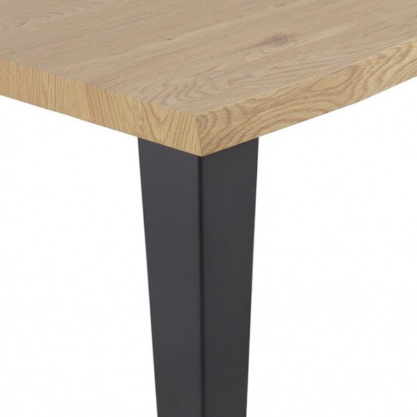 Está fabricada con cuatro patas de metal negro y un tablón rectangular de 5cm de grosor de melamina de madera de fresno que añadirá a tu hogar, con sus colores y materiales, una estética rústica e industrial.