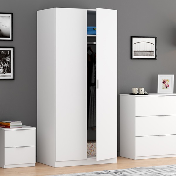 Está fabricada en melamina de excelentes calidades en color blanco, con tiradores metálicos.