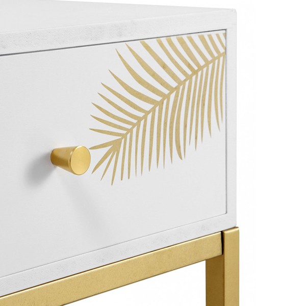 Por ello te presentamos la mesita de noche SHEET. Se trata de un modelo que combina diferentes estilos, con el objetivo de combinar con todo, ya sea un estilo clásico, casual, mid century, art deco, chic. El material base con el que se ha realizado la estructura es metal lacado en dorado, el sobre es de DM en tono blanco, con almacenaje de un cajón con dibujo decorativo y tirador metálico dorado.