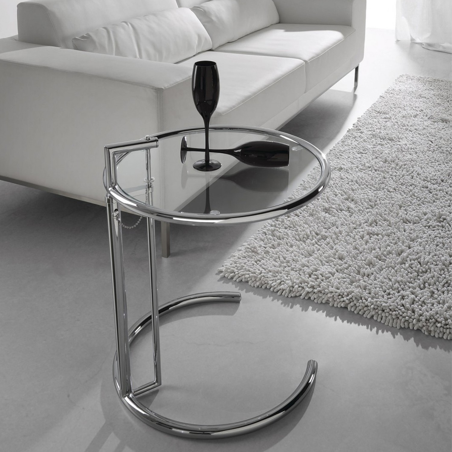 La mesita de café regulable E1027 Style inspirada en el diseño de EILEEN GREY fabricada en 1927, te permitirá regularla en altura para facilitarte su uso según donde quieras colocarla.