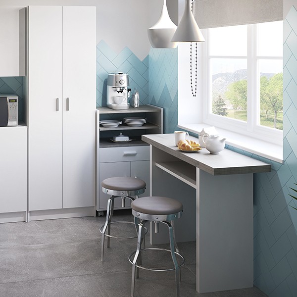 A veces la cocina se nos puede quedar pequeña, o necesitas ofrecer a tus trabajadores un espacio para las horas de las comidas, nuestro mueble auxiliar MANGER ofrece almacenaje y el lugar idóneo para colocar el microondas.