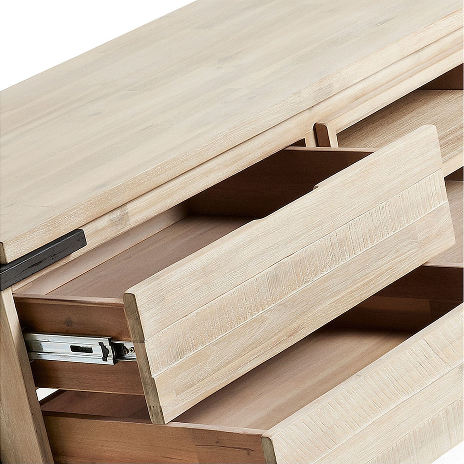 Realizado en madera de acacia natural, dispone de unas patas de metal muy originales que contrastan con el color de la madera, pues estas están pintadas en color envejecido.