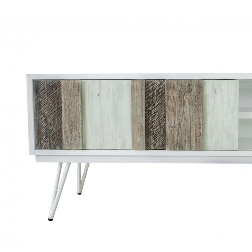 Con el mueble de TV UMPA podrás aportar a tu salón un ambiente limpio y elegante gracias a sus tonos claros, también encaja en un estilo mediterráneo por sus distintos acabados de la madera maciza de acacia que se encuentran en la puerta corredera.