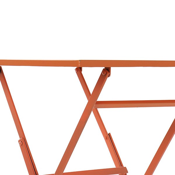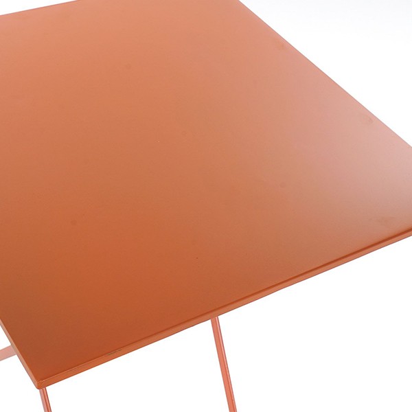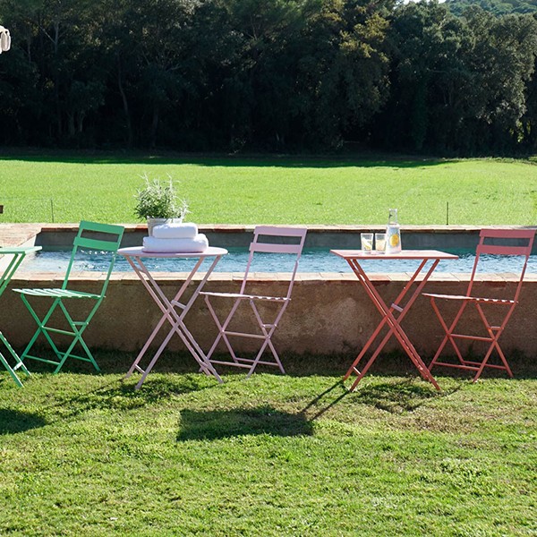 El conjunto está formado por 2 sillas y mesa de forma cuadrada en metal, con un color muy estival, el coral, color cálido con mucha energía.