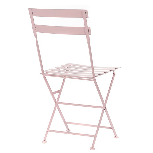 Se compone de dos sillas y mesa redonda, todas las piezas están hechas de acero y en tonalidad de un bonito y suave color rosa.