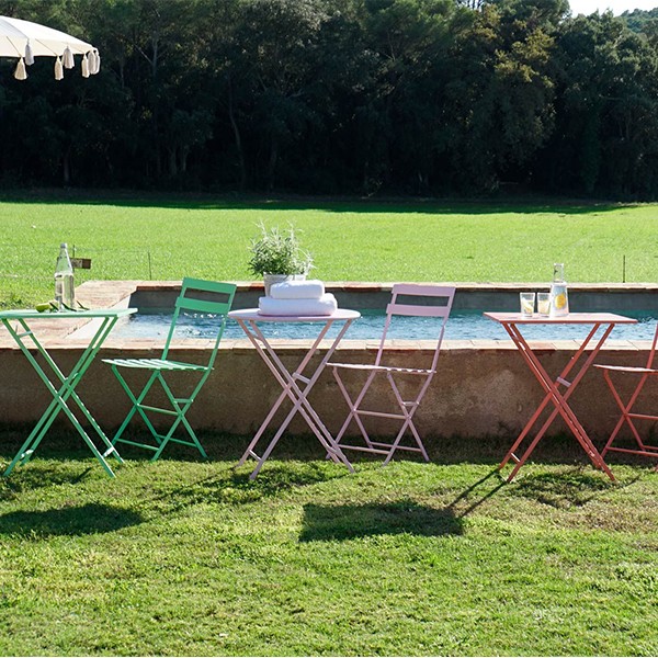 Dispones de zona exterior y necesitas de mobiliario duradero, pero sencillo el pack ROSA SPRING es la combinación perfecta para ti. Se compone de dos sillas y mesa redonda, todas las piezas están hechas de acero y en tonalidad de un bonito y suave color rosa. Debido a sus dimensiones, se adapta muy bien a espacios más reducidos como es el caso de pequeñas cocinas, terrazas, balcones o patios. También encaja con zonas de estar de una piscina, terraza de un bar, cafetería, etc.; con varios packs SPRING crearás un espacio individual para cada grupo o familia. El conjunto es plegable con lo que tiene facilidad de transporte y almacenaje. ¡En Sillatea encontrarás el pack SPRING en otros acabados también!