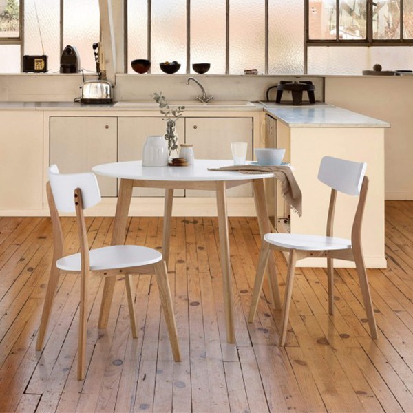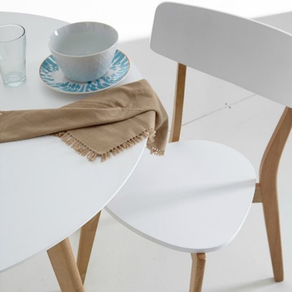 El pack o conjunto está compuesto por una de nuestras sillas más TOP de la web, la silla MIRPER, realizada su estructura en madera de roble natural y asiento y respaldo lacado en blanco; acompañadas de una mesa sencilla pero con personalidad, la mesa PELICAN, de patas de madera de caucho natural con sobre de DM lacado en blanco. La mesa de 100 cm de diámetro es perfecta para hasta 6 comensales.