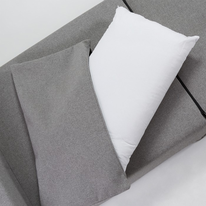 No es otro que el puff cama ABUYA. Se trata de un modelo diseñado en tela Varese en color gris, que previamente ha recibido un tratamiento con Teflón antimanchas. En su interior, contiene un colchón plegable de espuma de poliuretano, dando lugar a una cama de 70×185 centímetros, ideal para ofrecer un cobijo a amigos que se presentan a tu casa de forma inesperada.