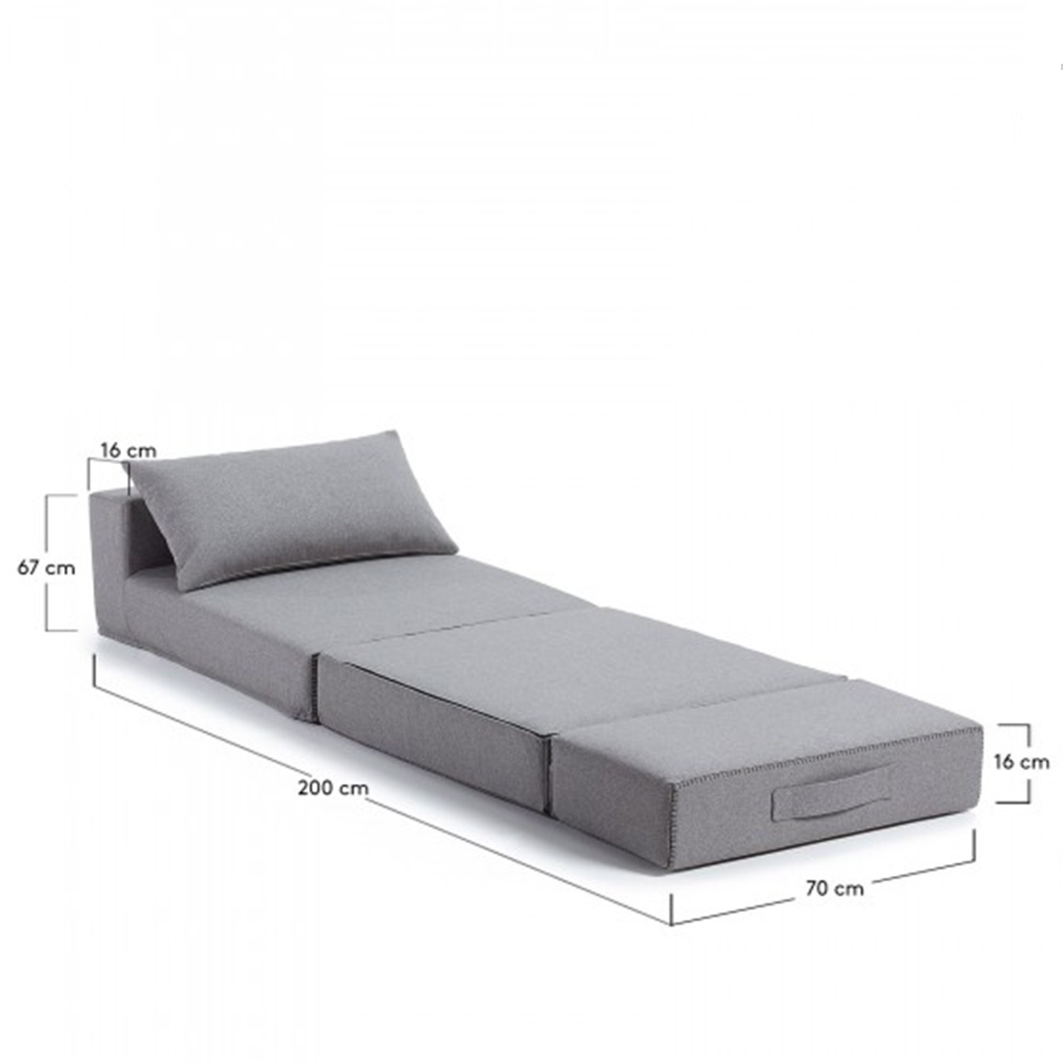 Puff cama ABUYA diseñado en tejido de color gris. Medidas:  Medida alto: 67 cm. Medida ancho: 70 cm. Medida profundo: 89-200 cm.