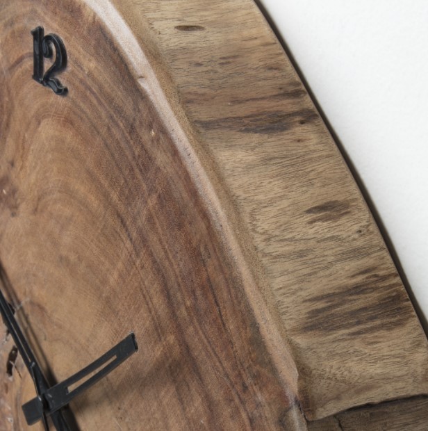 Por ello, queremos presentarte modelos como el reloj de pared JOLUGA. Se trata de un artículo, perfecto para espacios en los que predomine el estilo rústico. En forma de tronco de árbol cortado, ha sido diseñado mediante madera de acacia natural. También cuenta con detalles en metal, como los números o las agujas.