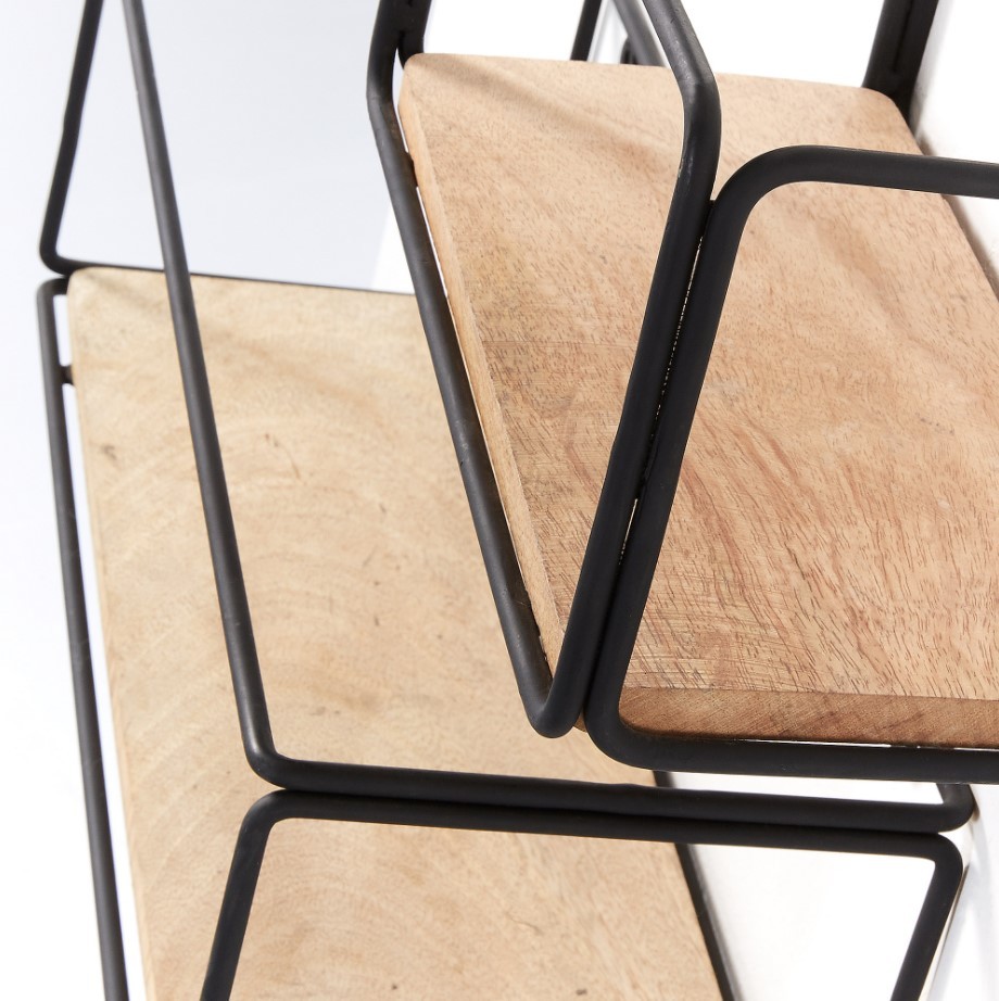 Dos preciosas estanterías de estilo industrial, ambas en forma rectangular pero en tamaños variados, diseñadas en metal de color negro a las que les acompañan dos tableros realizados en madera de mango macizo.