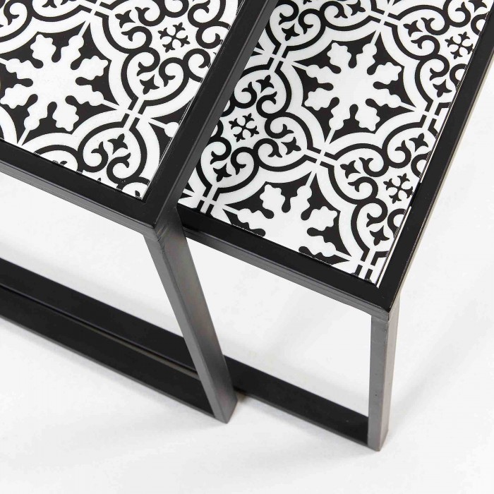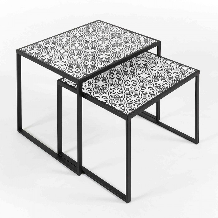Y lo puedes hacer si tomas la decisión correcta, la de adquirir el set de dos mesas auxiliares LEGAZPI. Se trata de dos mesas nido, es decir, una más pequeña que la otra. Esto hará que puedas guardarlas fácilmente cuando no precises utilizarlas. En su diseño predomina el metal en color negro, el que da lugar a su estructura. Para el sobre se ha utilizado la fibra de madera de densidad media y terminada mediante un mosaico que le aporta un mejor acabado final.