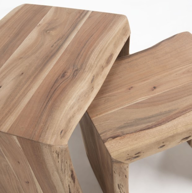 Si, hablamos del set de dos mesas auxiliares RUVEZO. Se tratan de dos modelos en forma de letra "U" invertida, realizados en madera de acacia maciza. Mientras que una de ellas, la mayor, alcanza el medio metro de altura, la pequeña se queda en 45 centímetros. Con estas medidas se consigue que, cuando no las utilices, puedas guardar una debajo de la otra.