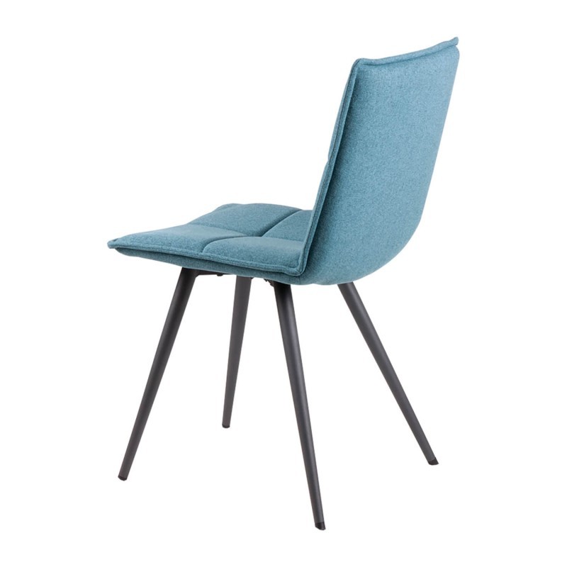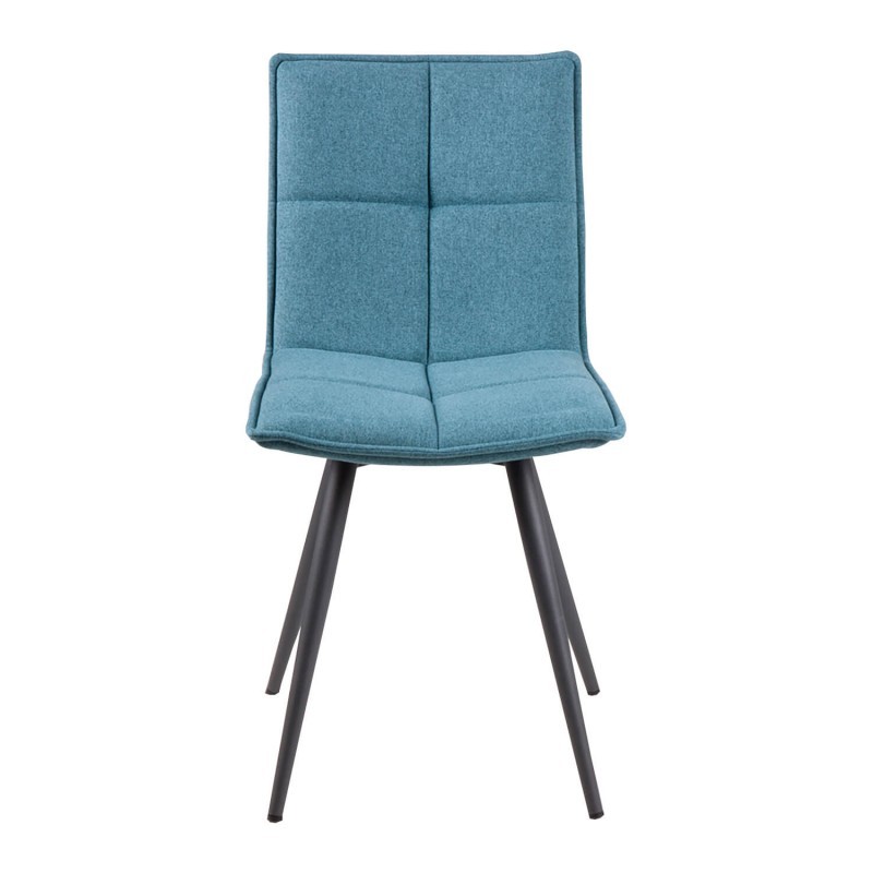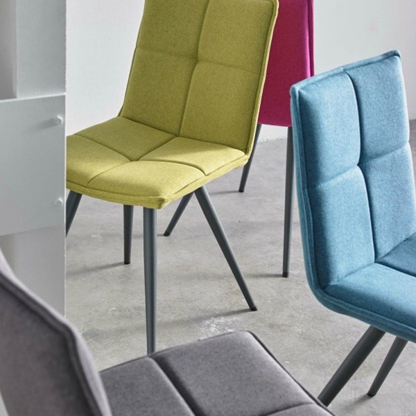 Y es que el diseño de la silla de comedor ENBAZ no deja indiferente a nadie. Está formada por un asiento y un respaldo unidos entre si, y tapizados en color azul. Cada uno de ellos queda dividido en cuatro cuadrados iguales, haciendo de él un diseño original y divertido. En cambio las patas son de acero, un metal suficientemente resistente para soportar el peso de la persona que en ella quiera tomar asiento. Además, para estas patas se ha elegido el color negro para su acabado final.
