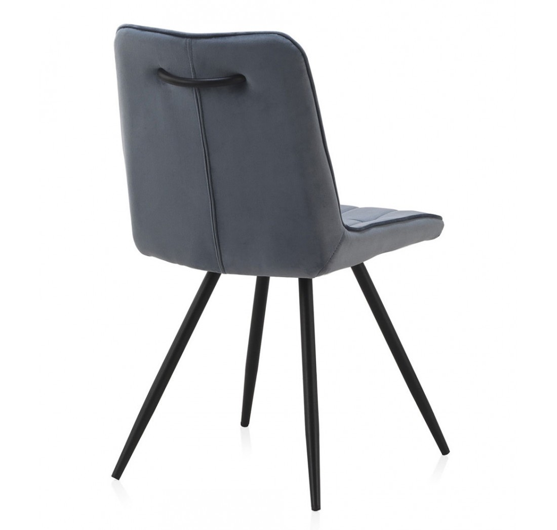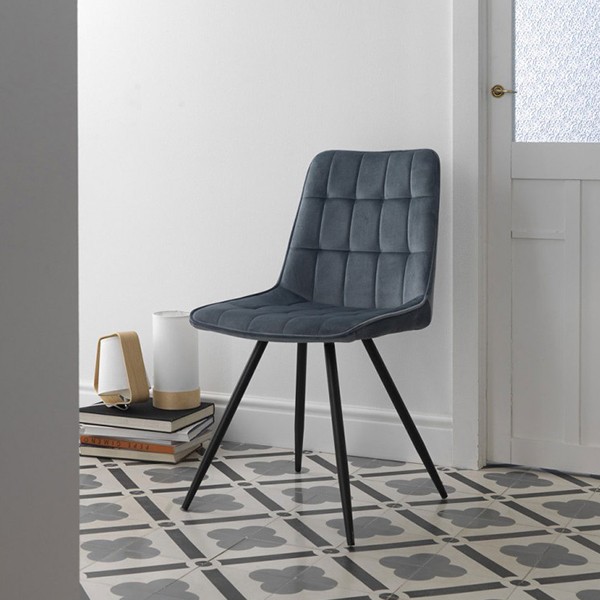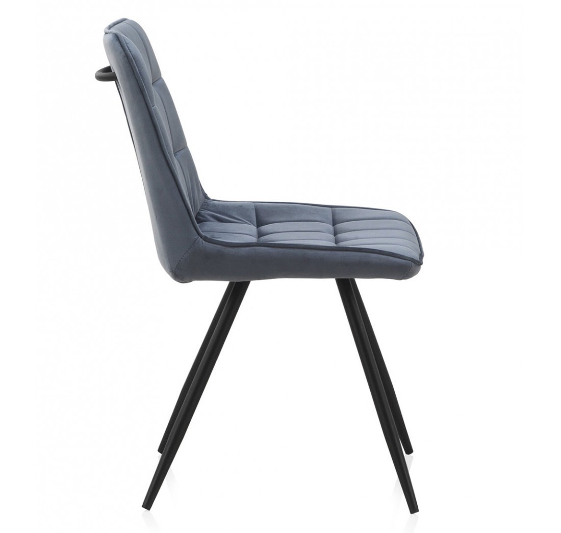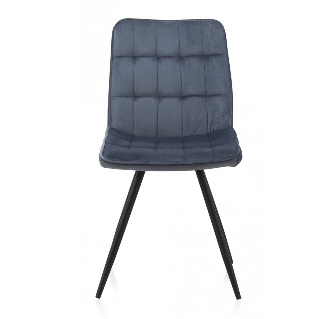 Silla de comedor en tejido azul oscuro y metal negro
