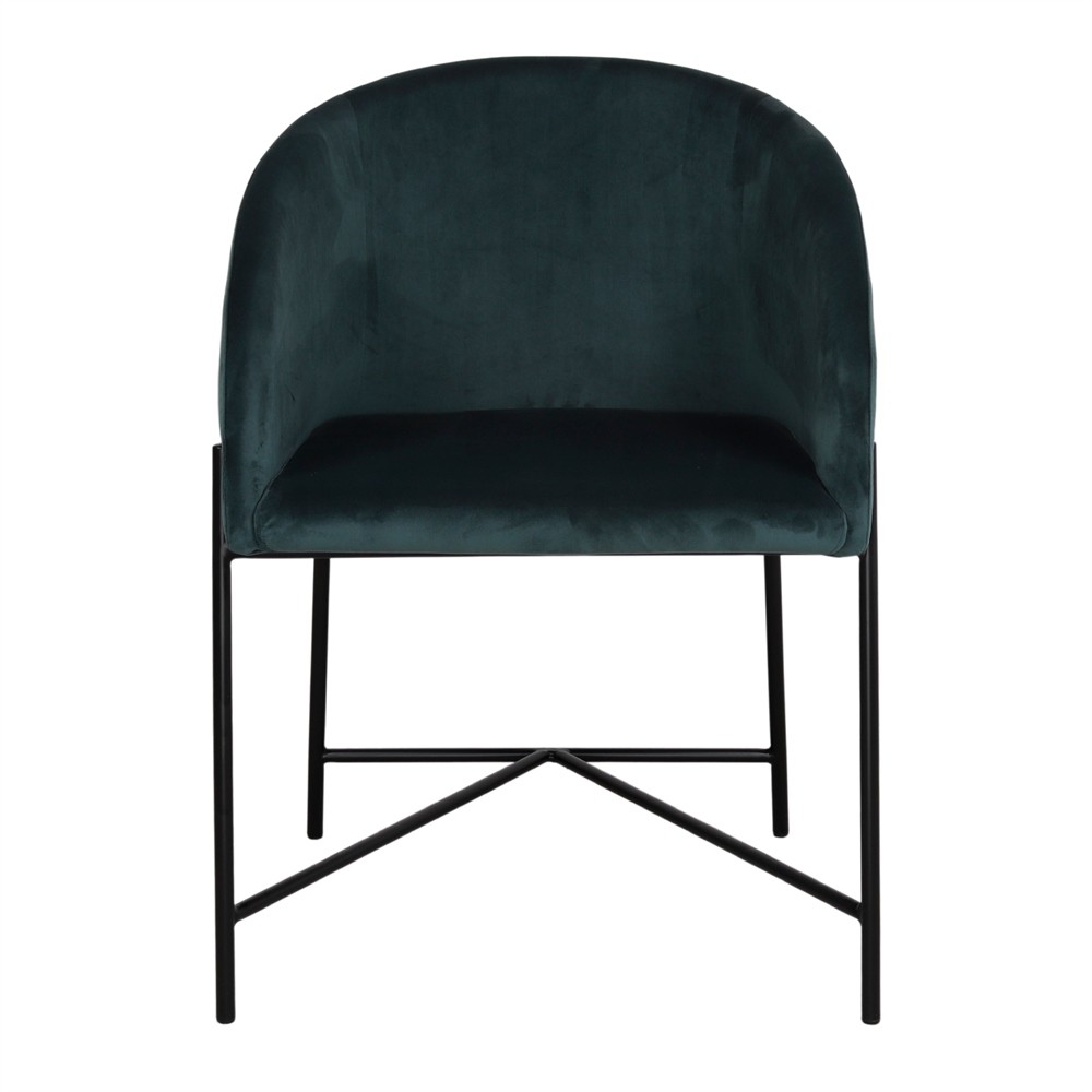 SILLA DE COMEDOR EN TERCIOPELO AZUL PETRÓLEO Y ACERO NEGRO