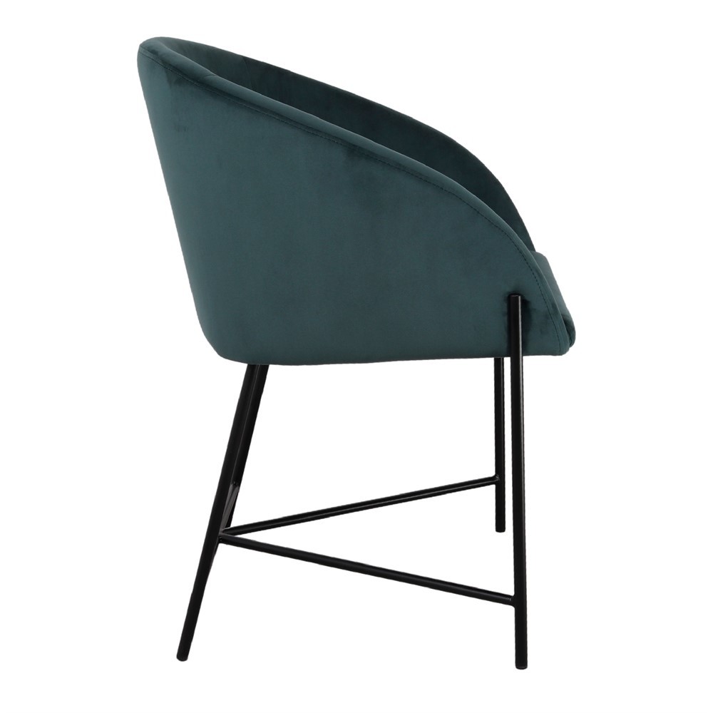Color: Azul Petróleo y Negro. Materiales: Terciopelo y Acero. Medidas:  Medida alto: 82 cm. Medida ancho: 57 cm. Medida profundo: 58 cm. Medida alto asiento: 47.5 cm.