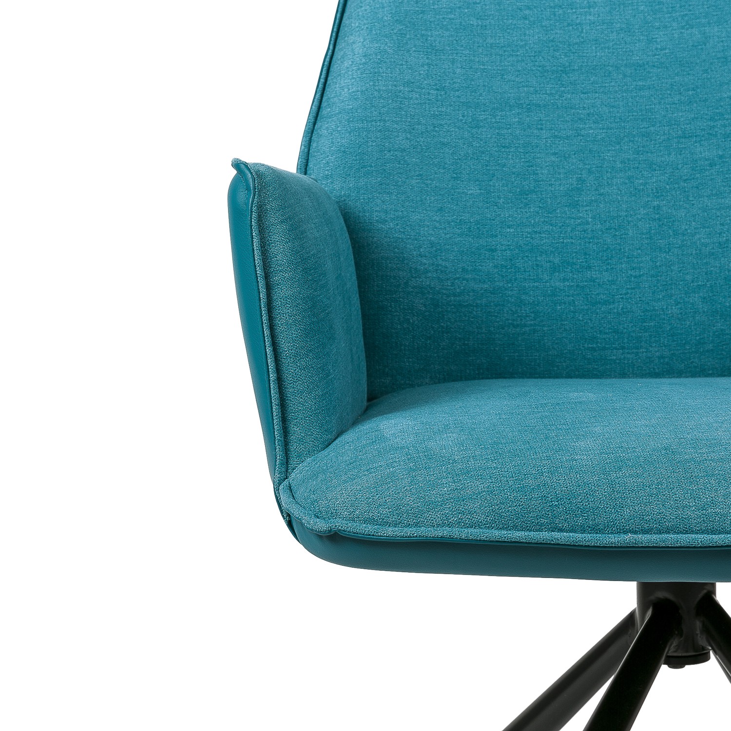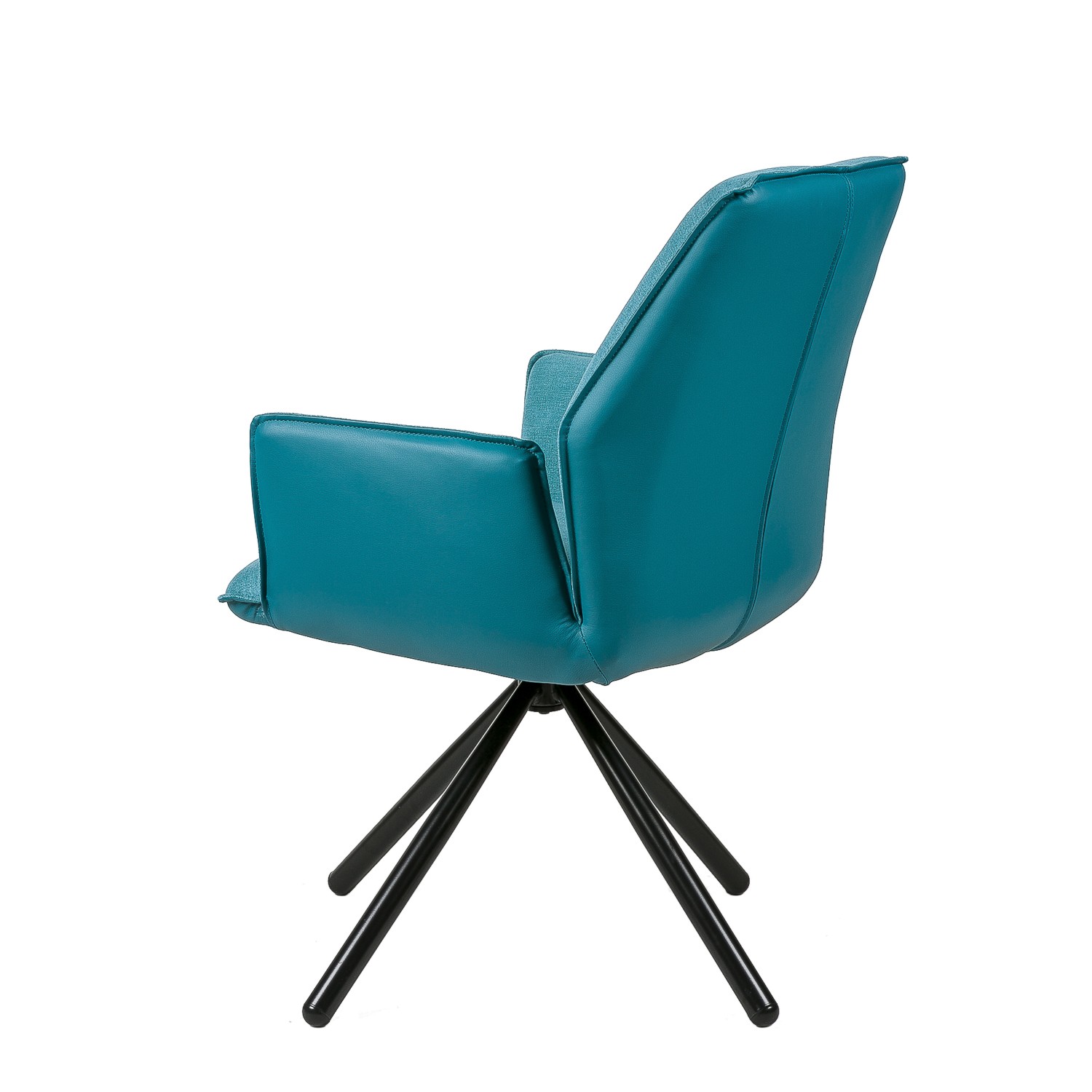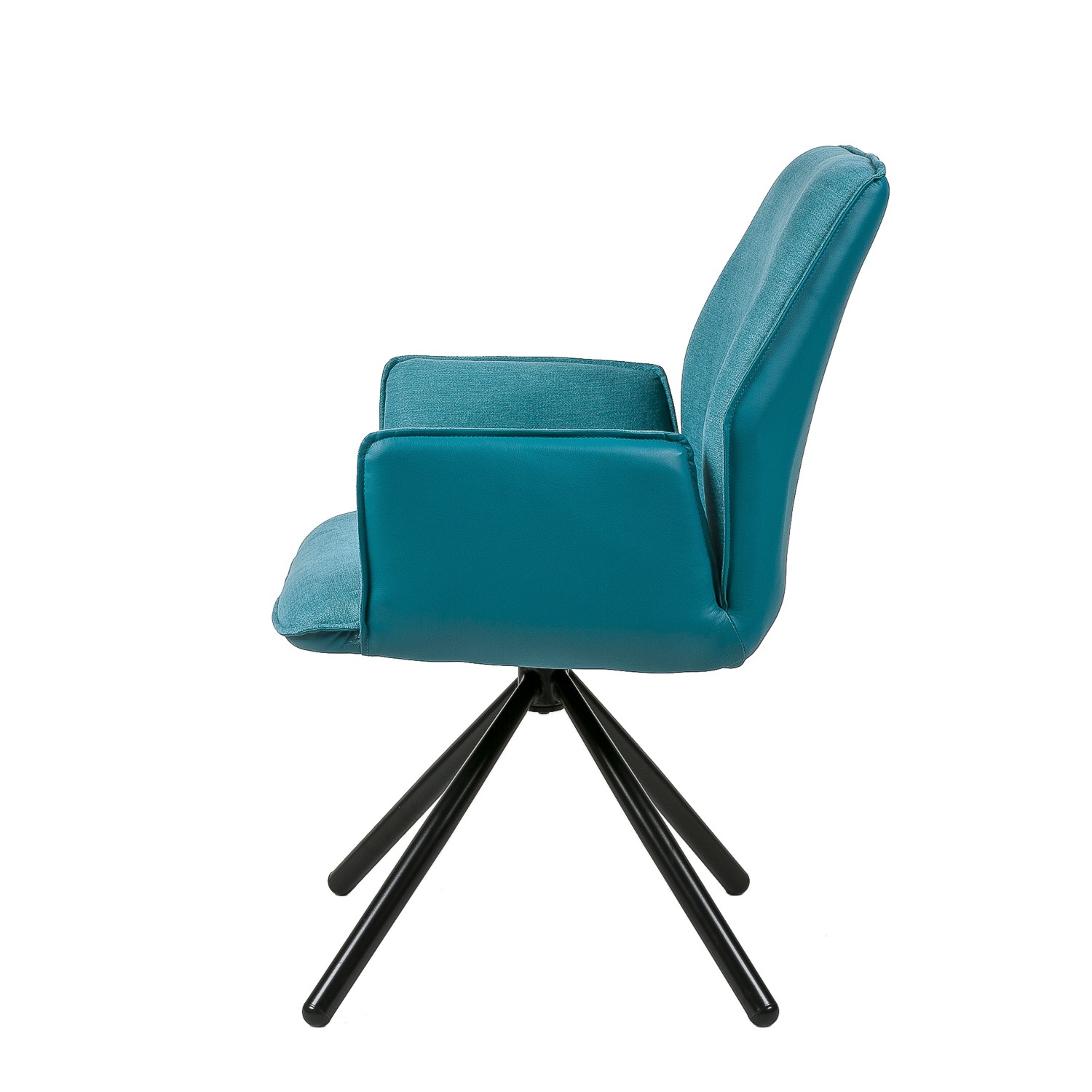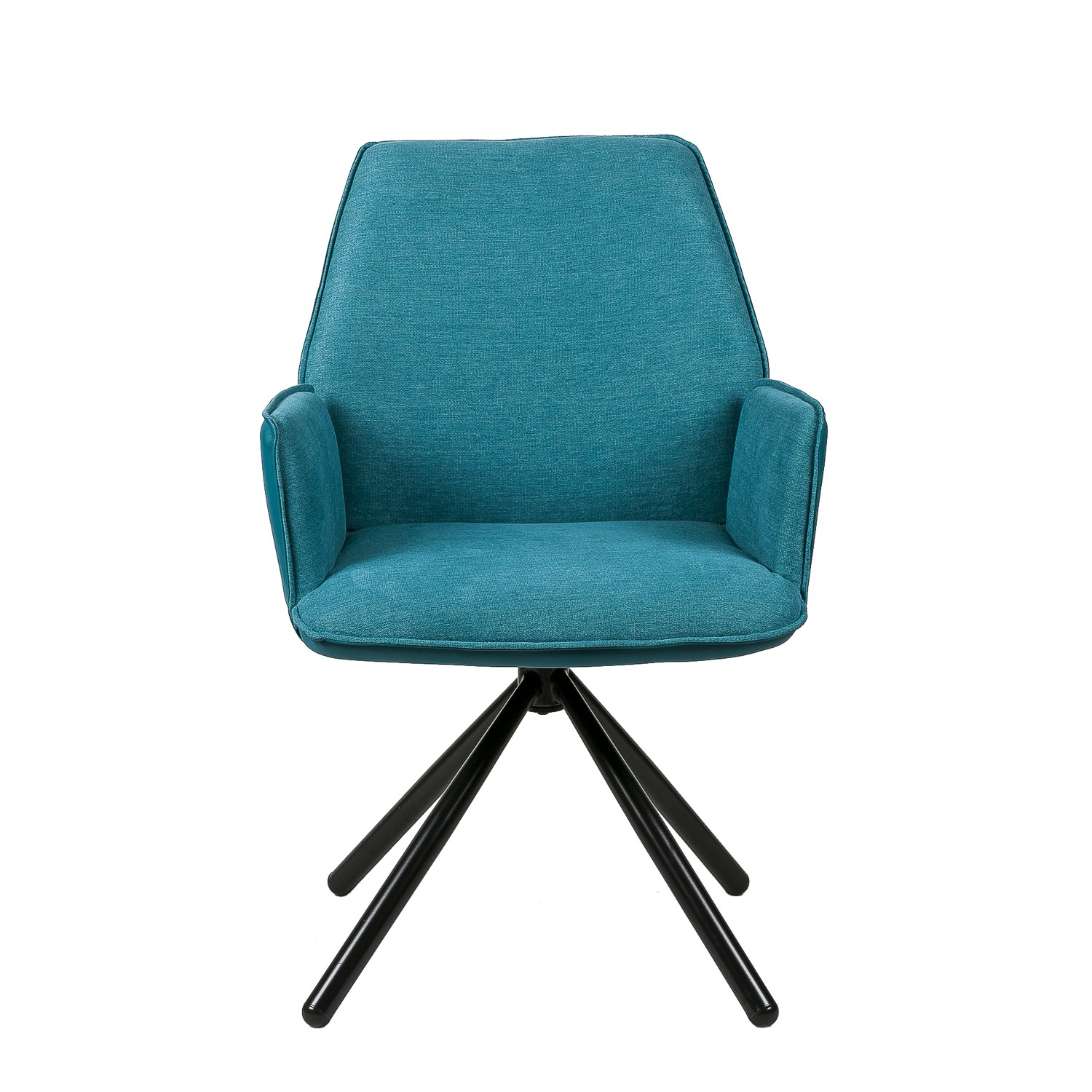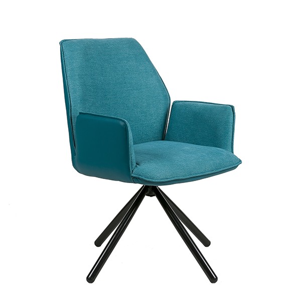 La silla de comedor TEA es una excelente opción para todo tipo de salones y comedores. Su diseño es giratorio, y consta de cuatro patas metálicas, en color negro, y presentadas en forma piramidal, que son las encargadas de sostener un asiento y un respaldo realizados mediante la combinación de dos materiales, el tejido en su cara interior, y la polipiel en la exterior. Su acabado es en color azul. Gracias a su forma y que dispone de reposabrazos, conseguimos una gran sensación de comodidad. No querrás levantarte de ella. Dos tonalidades distintas del color gris, mostaza, beige o rojo son otras de las posibilidades de adquisición de la silla de comedor TEA. No te las pierdas.