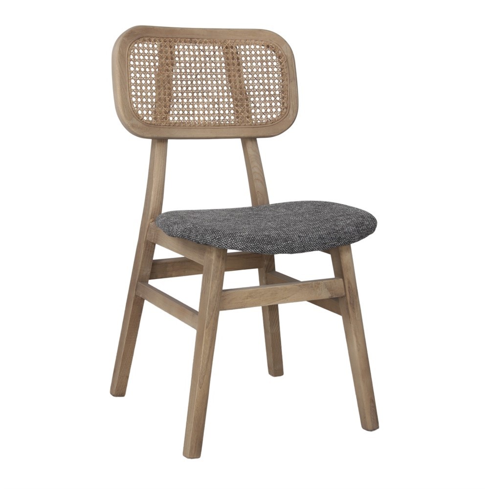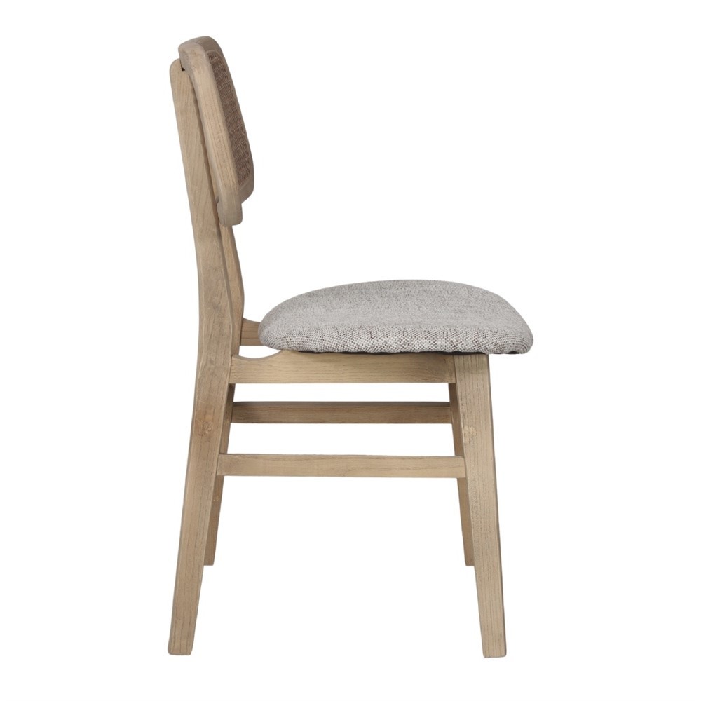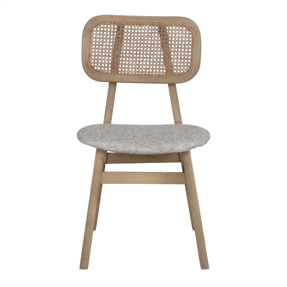SILLA DE COMEDOR EN MADERA DE OLMO, ENEA NATURAL Y TEJIDO COLOR BEIGE