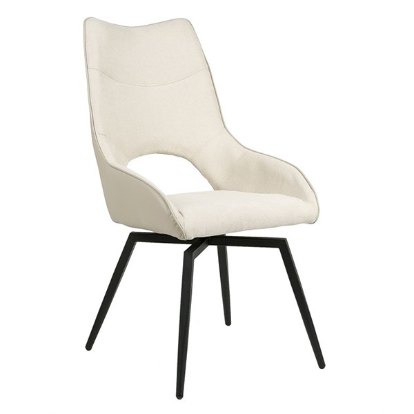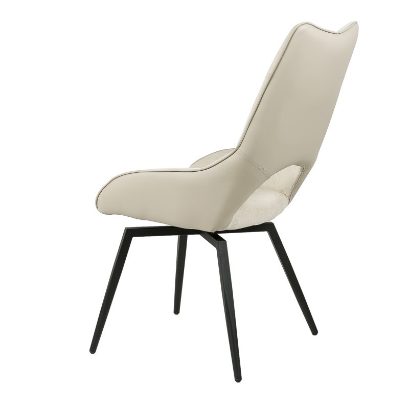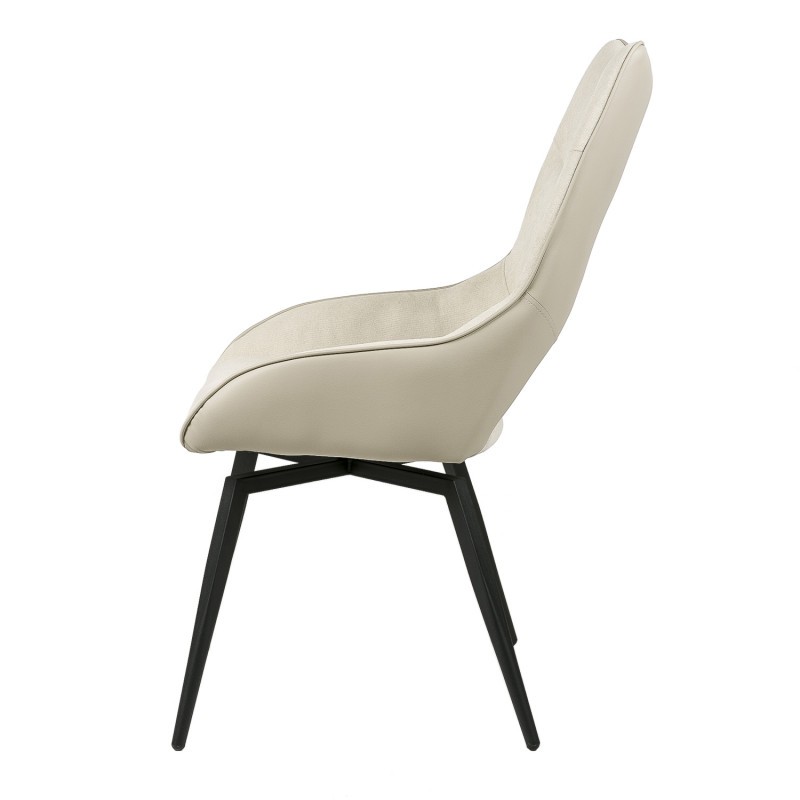 Silla de comedor en tejido y polipiel beige, metal negro.