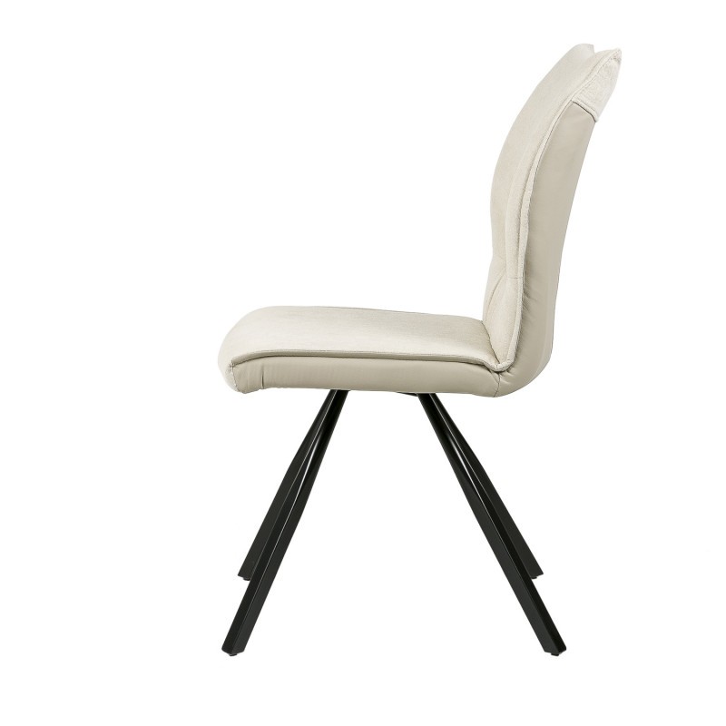 Silla de comedor en tejido y polipiel beige, metal negro.