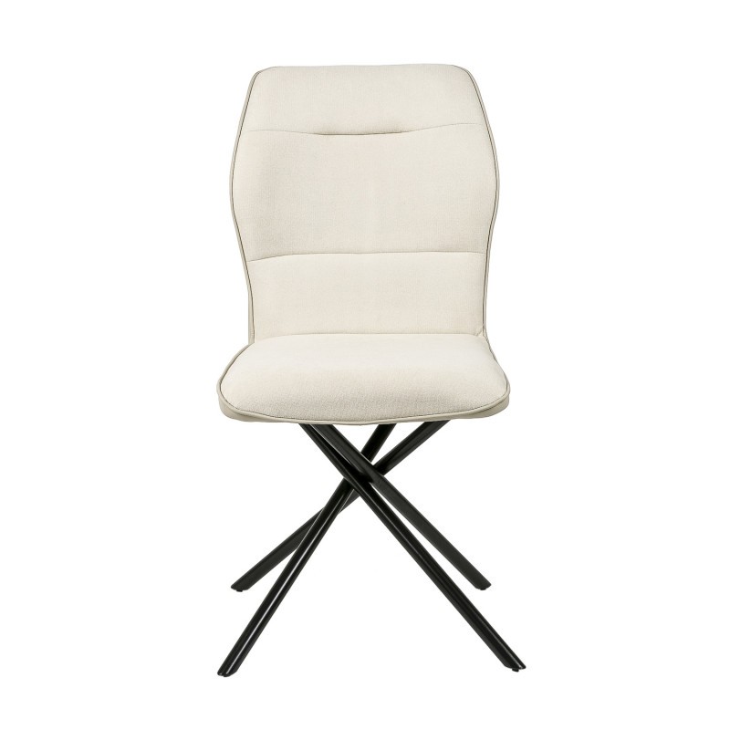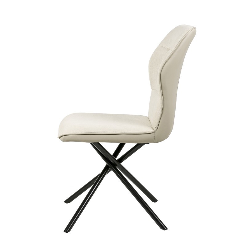 Silla de comedor en tejido y polipiel beige, metal negro.