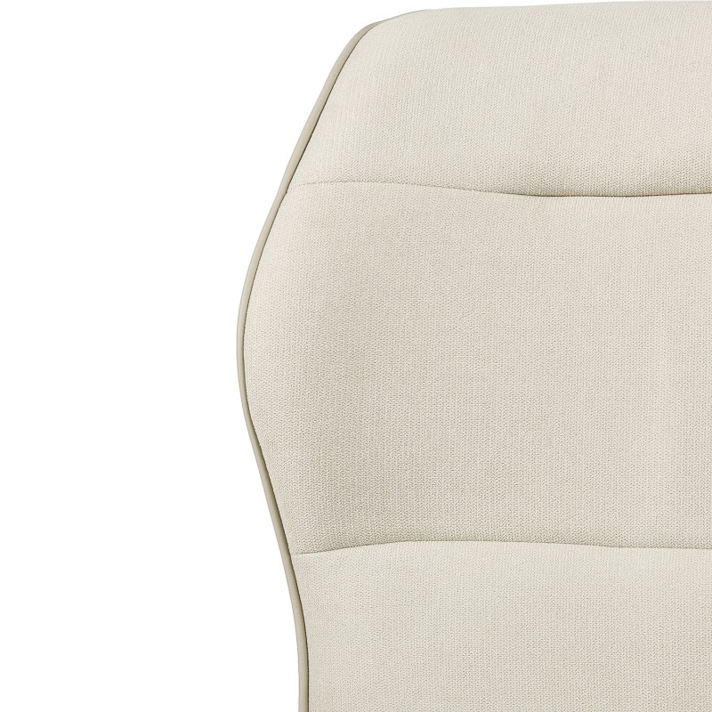 Está formada por un asiento y un respaldo que se presentan en una única pieza, y que se encuentran tapizados en dos materiales: por la cara exterior, polipiel, mientras que la interior es de un suave tejido acabado en color beige.