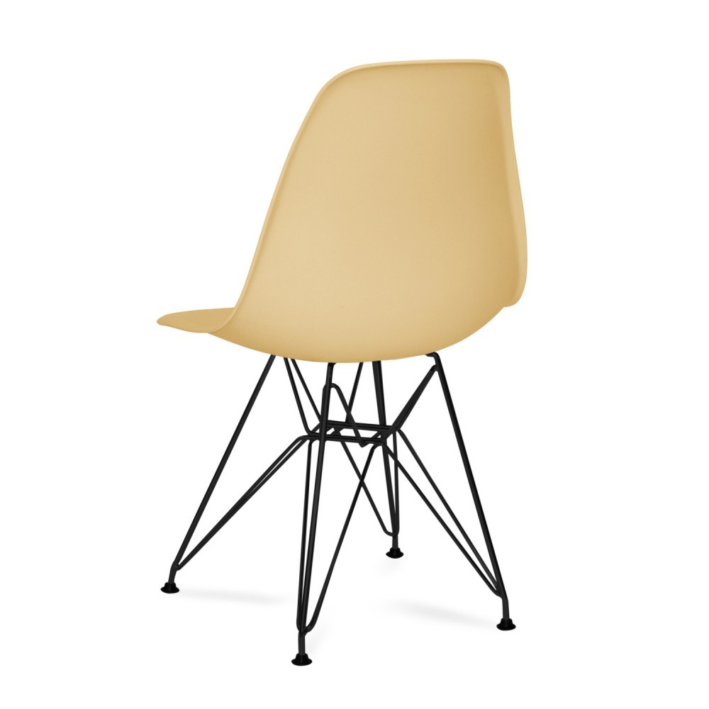 Silla de comedor de plástico beige y metal negro