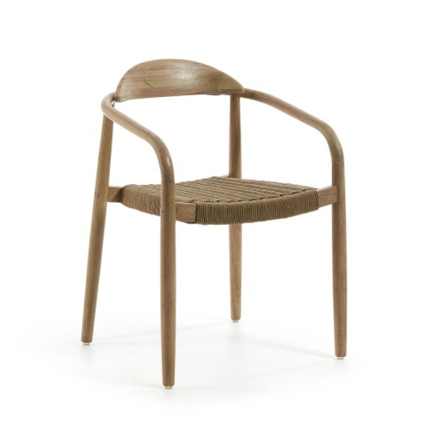 Silla de comedor en madera de acacia y cuerda de poliéster beige
