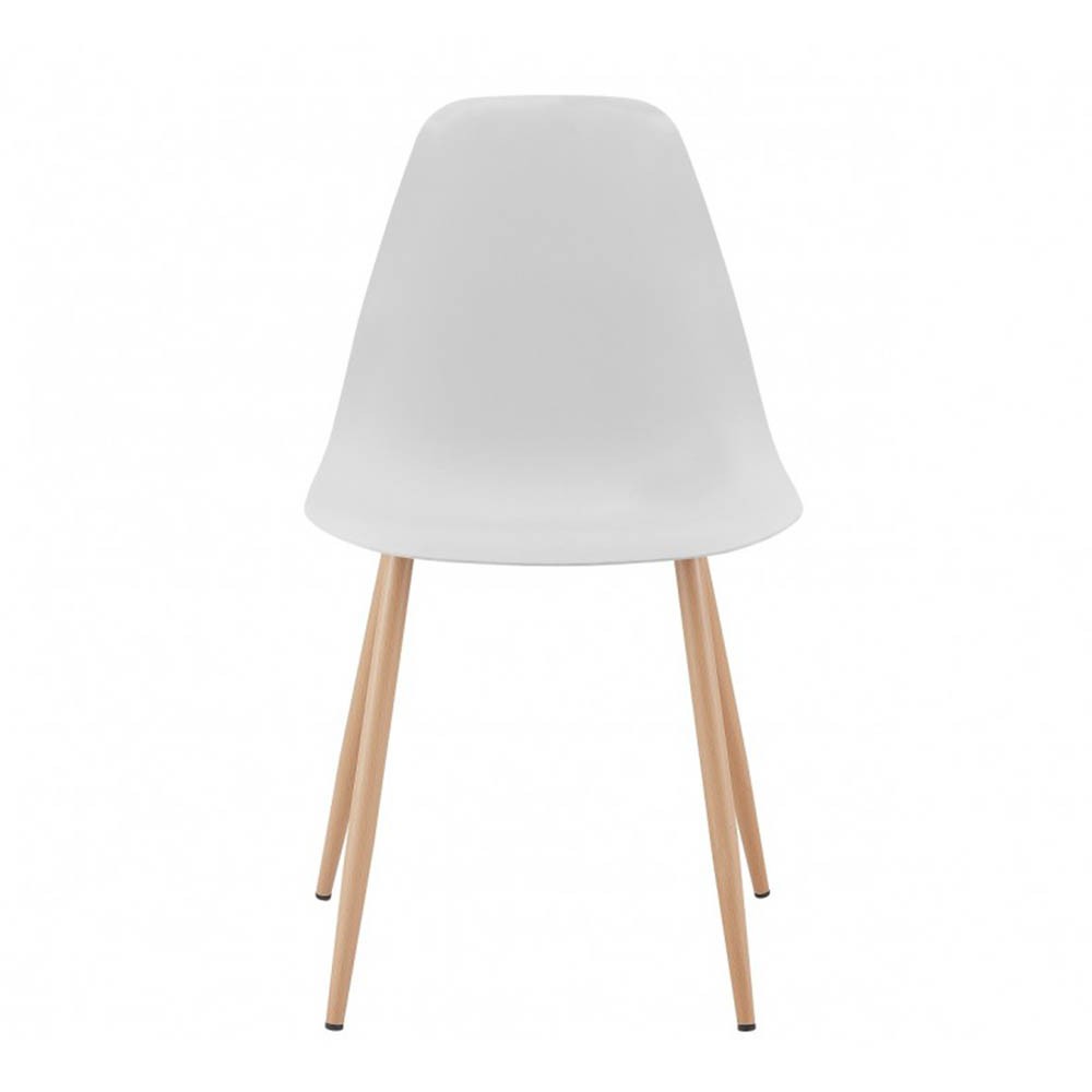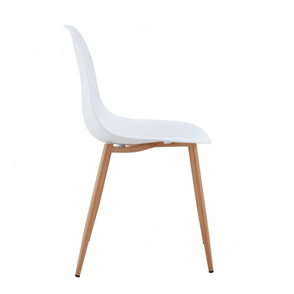Como hemos mencionado anteriormente, su asiento, inspirado en la famosa DSW de Eames, está realizado en una sola pieza de plástico ergonómico en color blanco y estructura de metal con efecto madera que dan gran estabilidad y durabilidad.