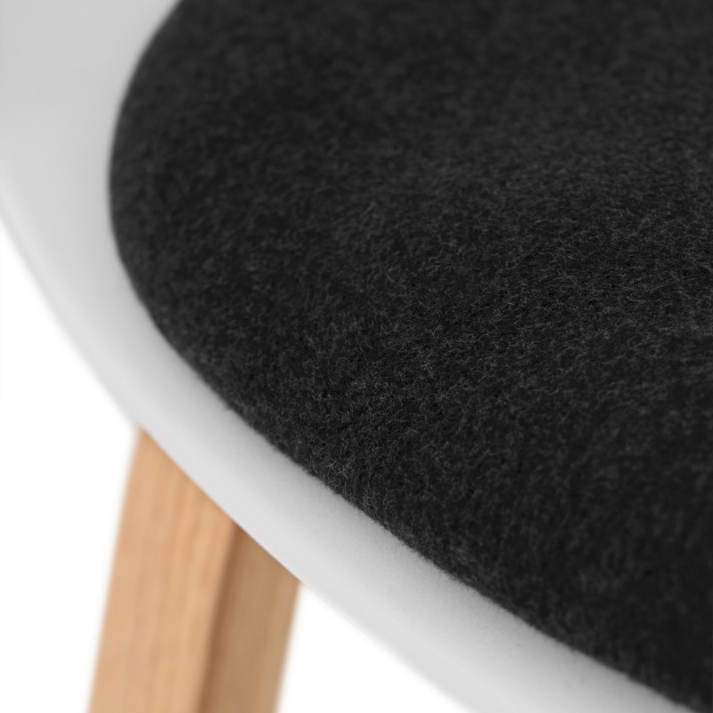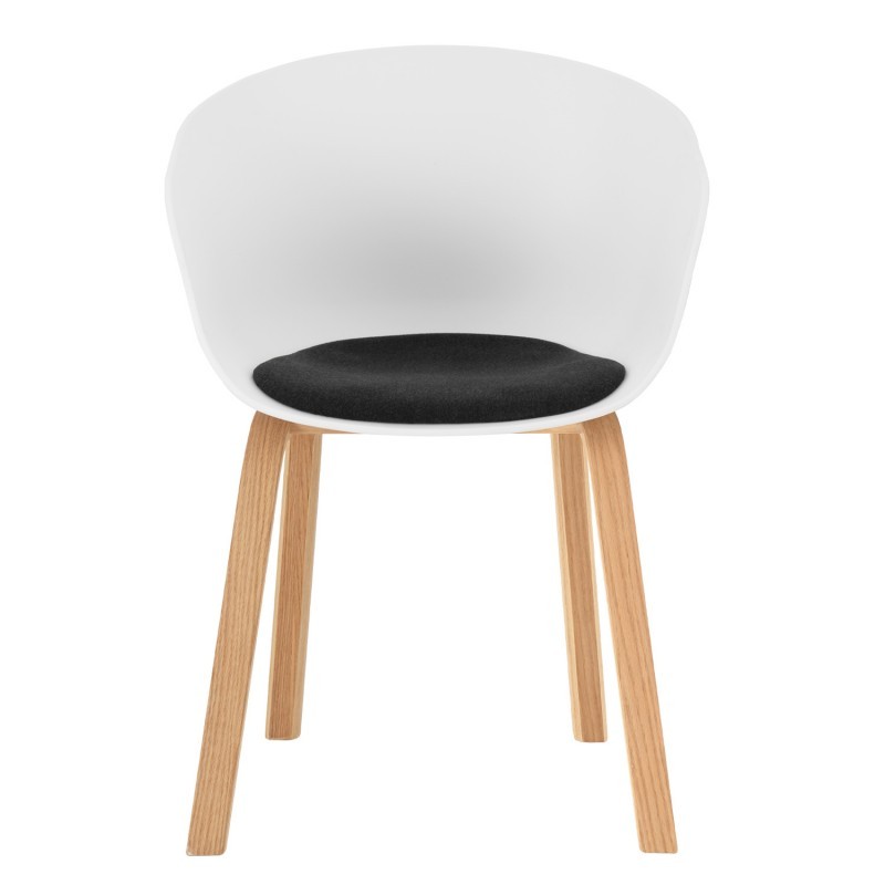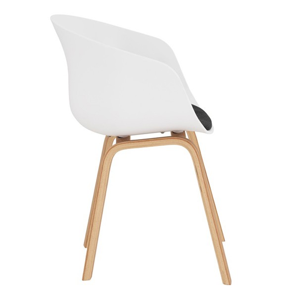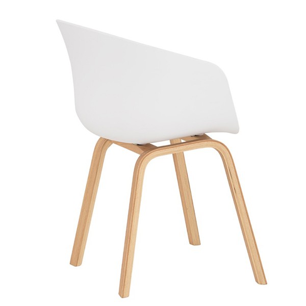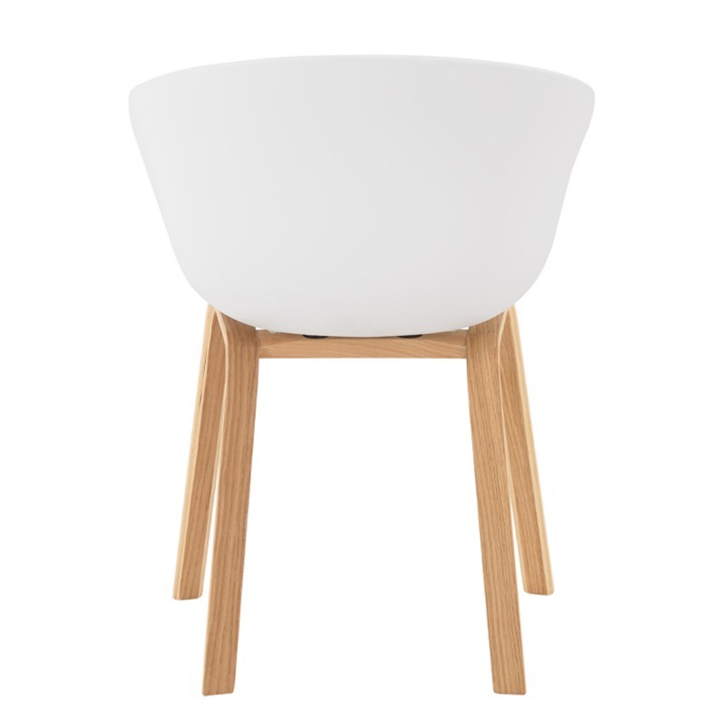 Silla de comedor en plástico blanco y madera