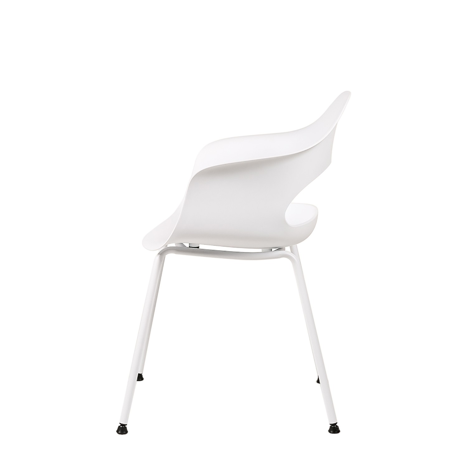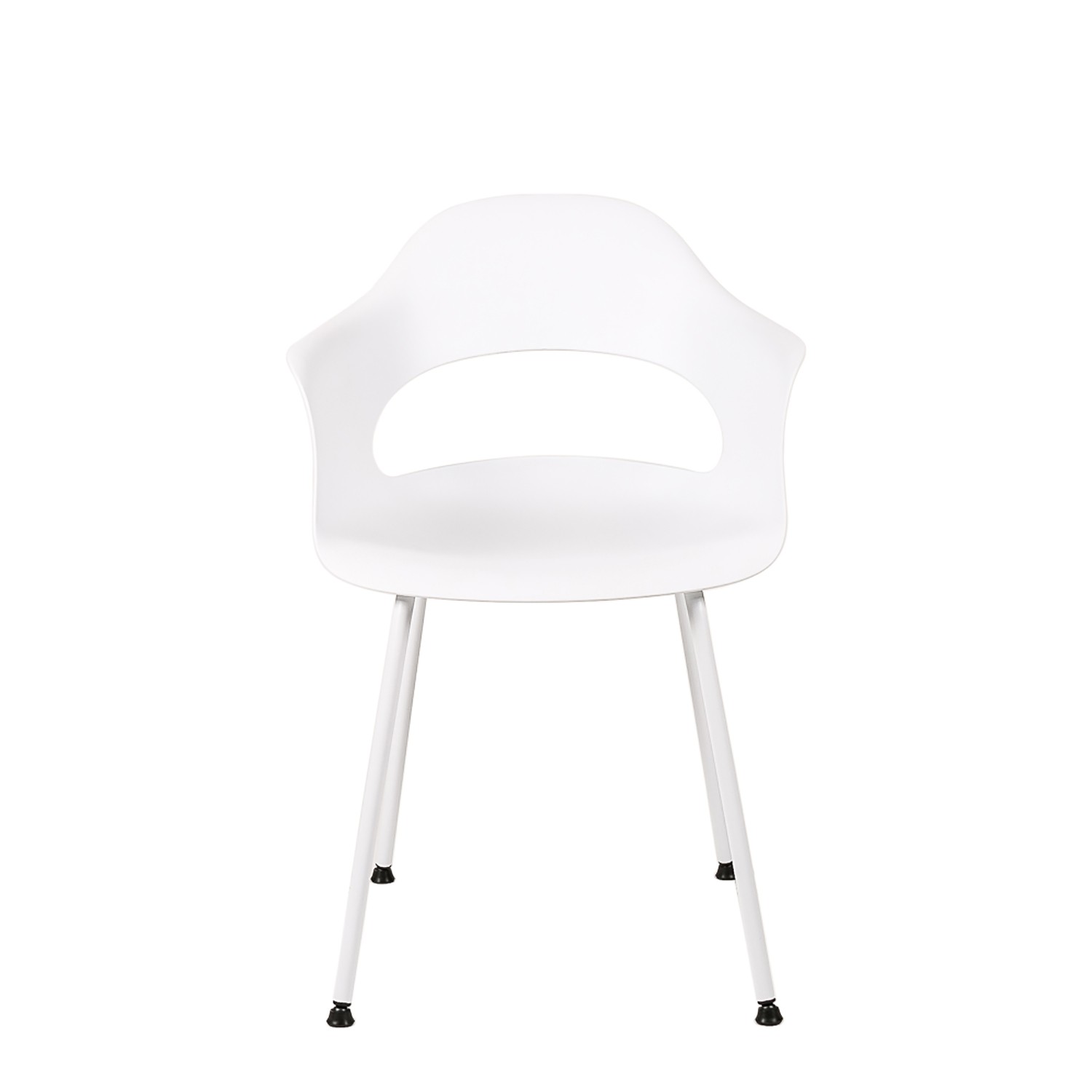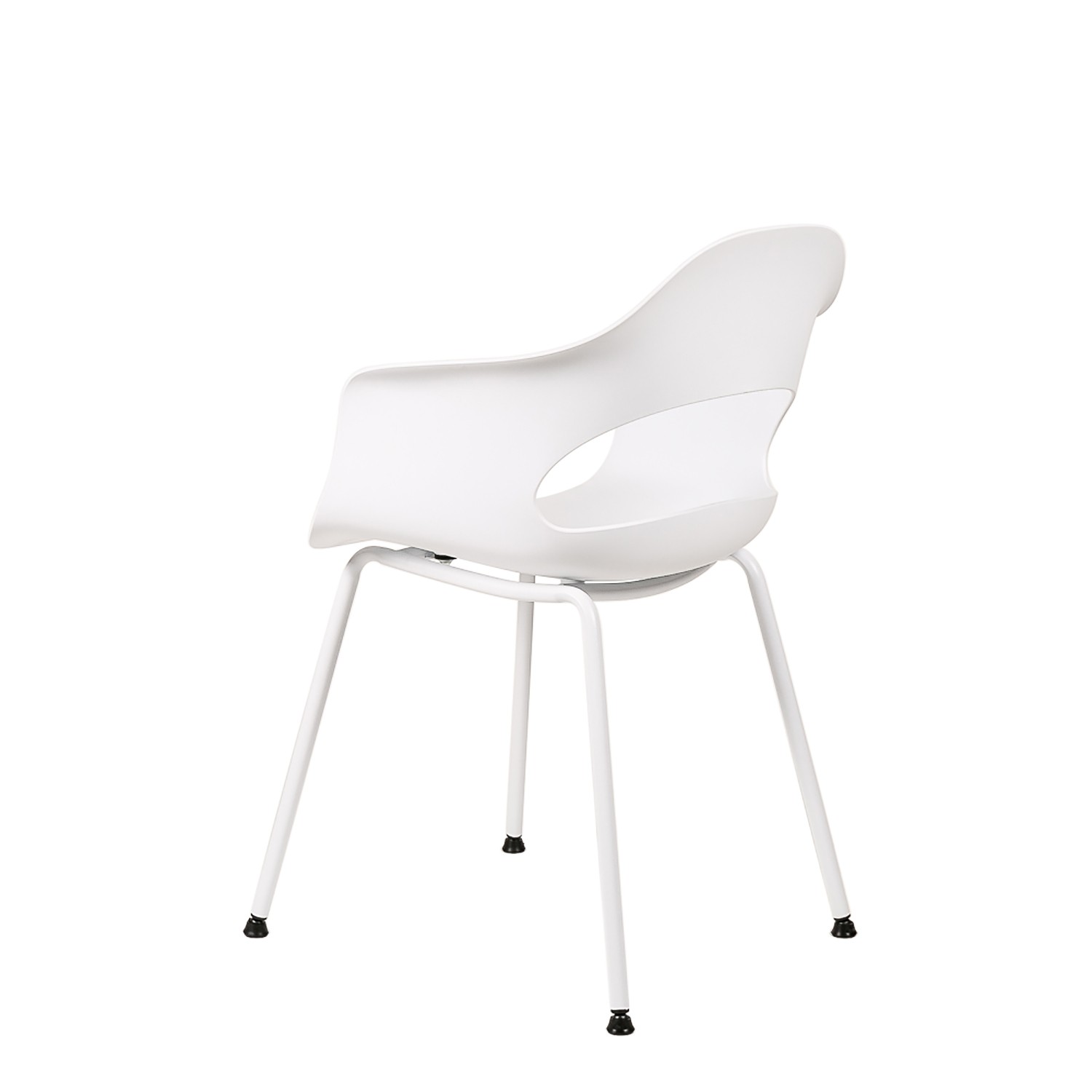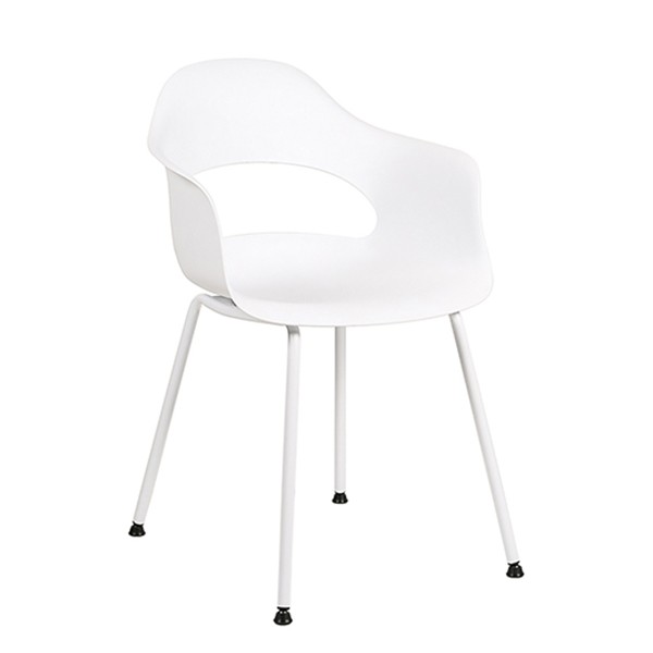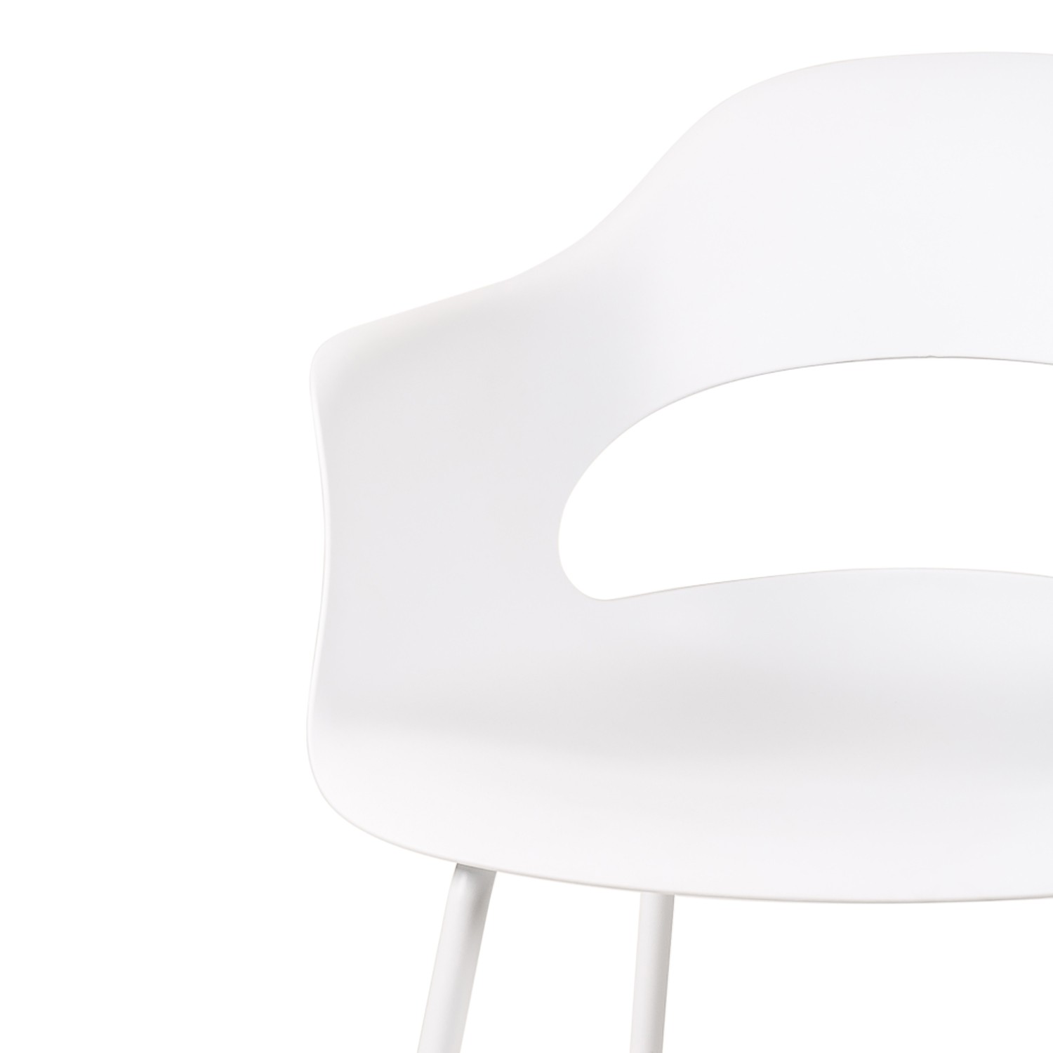 Así pues, una buena opción es la silla de comedor LESCALA, un modelo formado por una estructura de asiento y respaldo realizados en plástico acabado en color blanco, acompañado por cuatro patas de la misma tonalidad, aunque fabricadas en metal para conseguir una mayor estabilidad. Además dispone de reposabrazos para mayor comodidad.