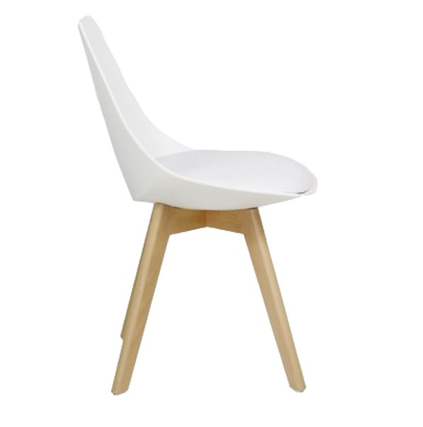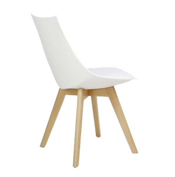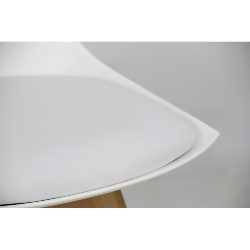 Silla de comedor en plástico blanco y madera