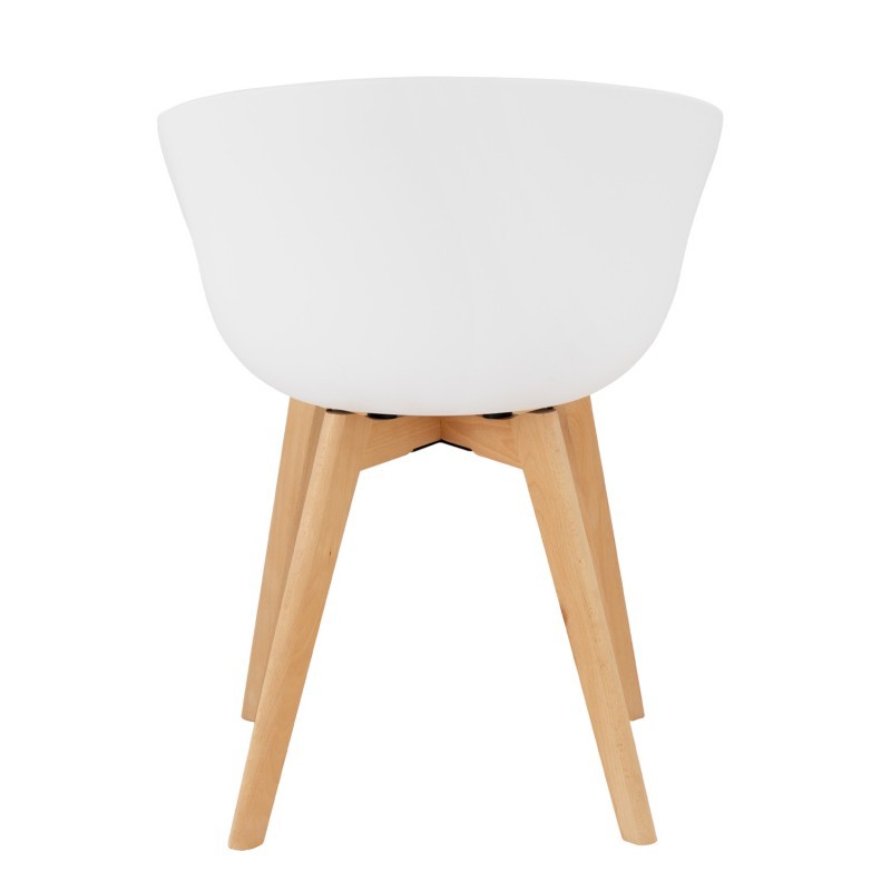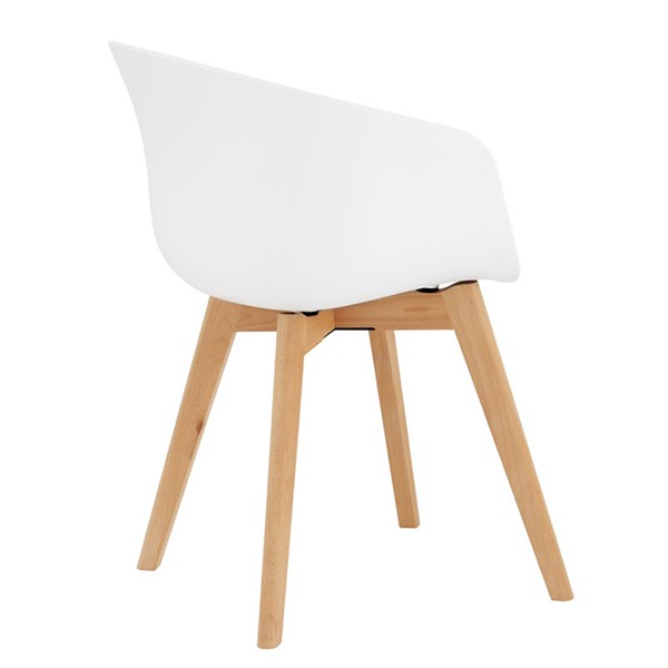 Silla de comedor en plástico blanco y madera