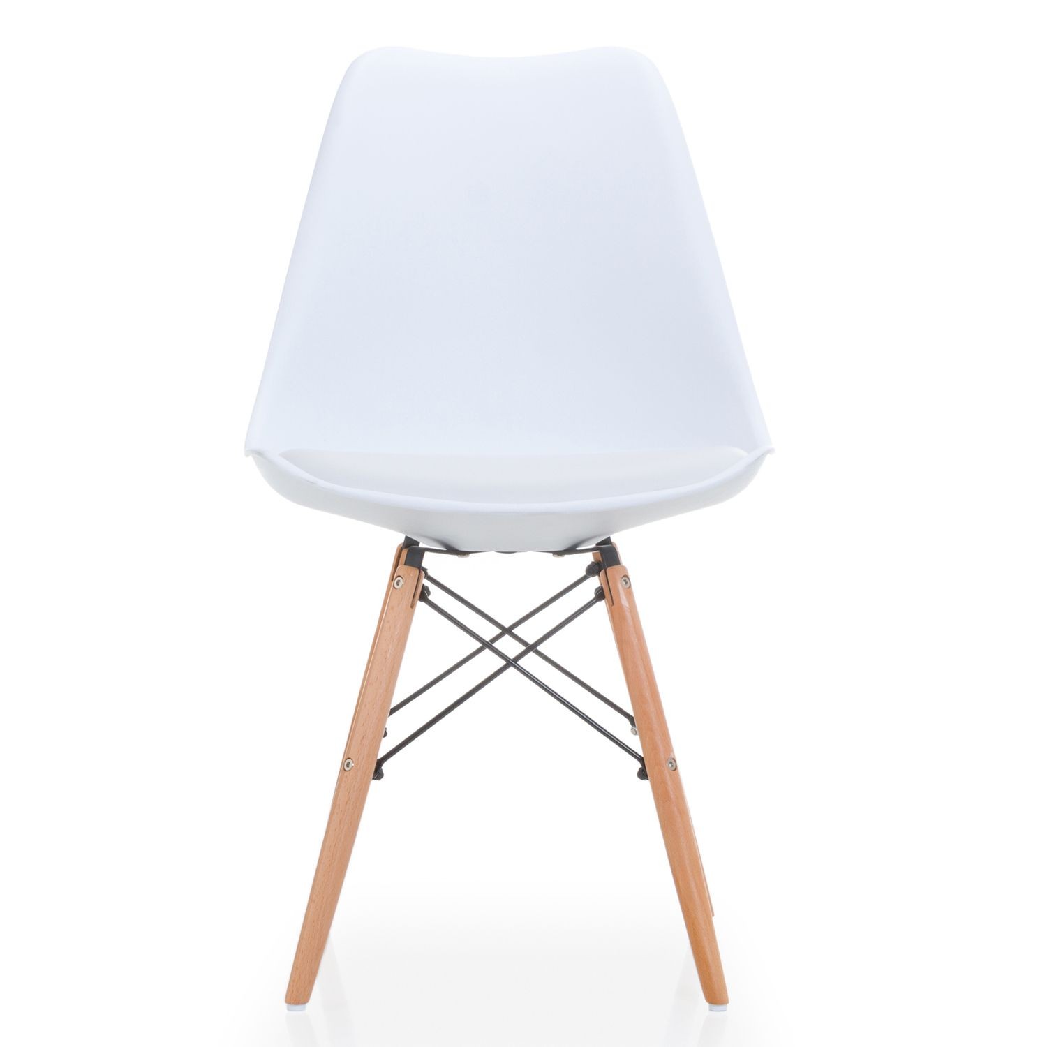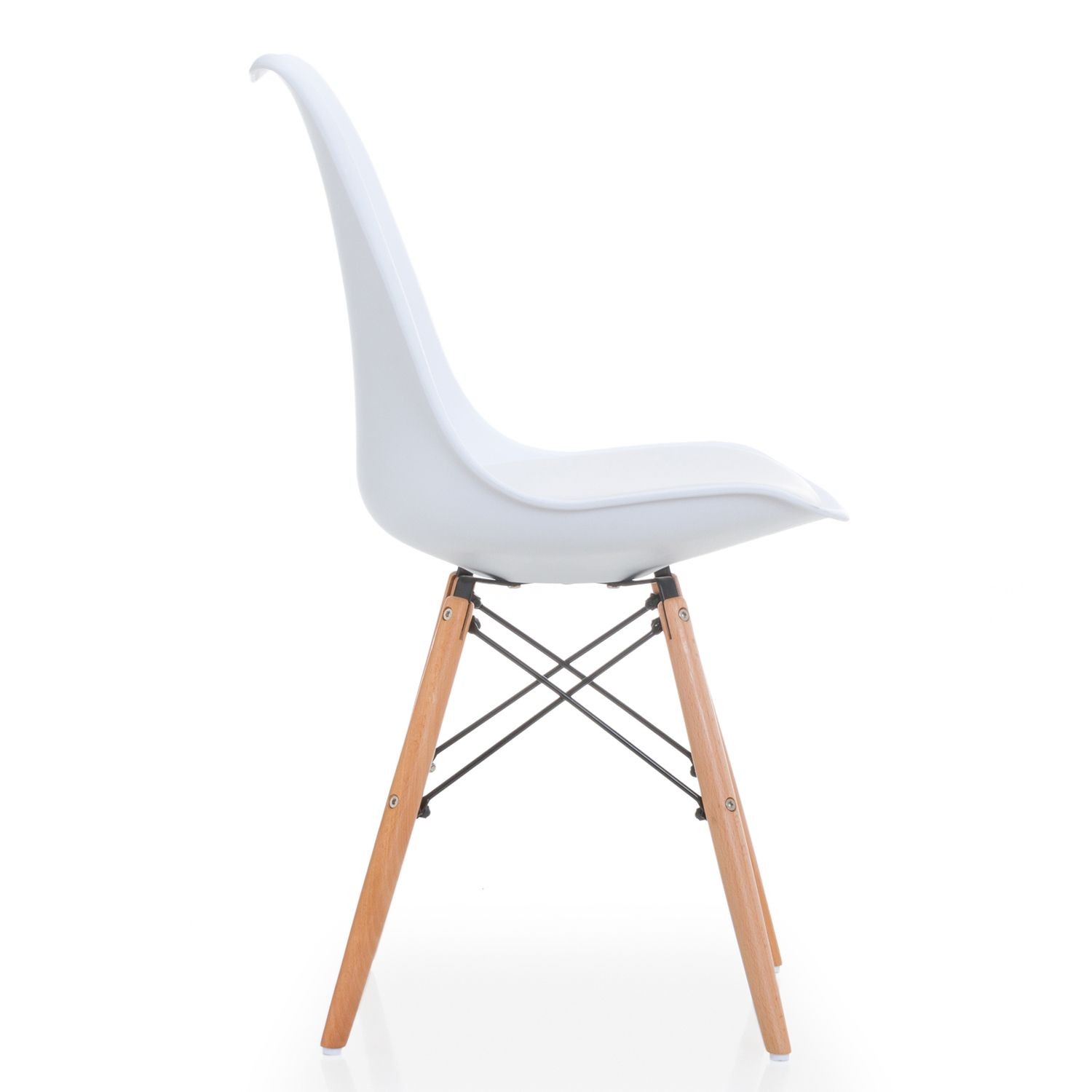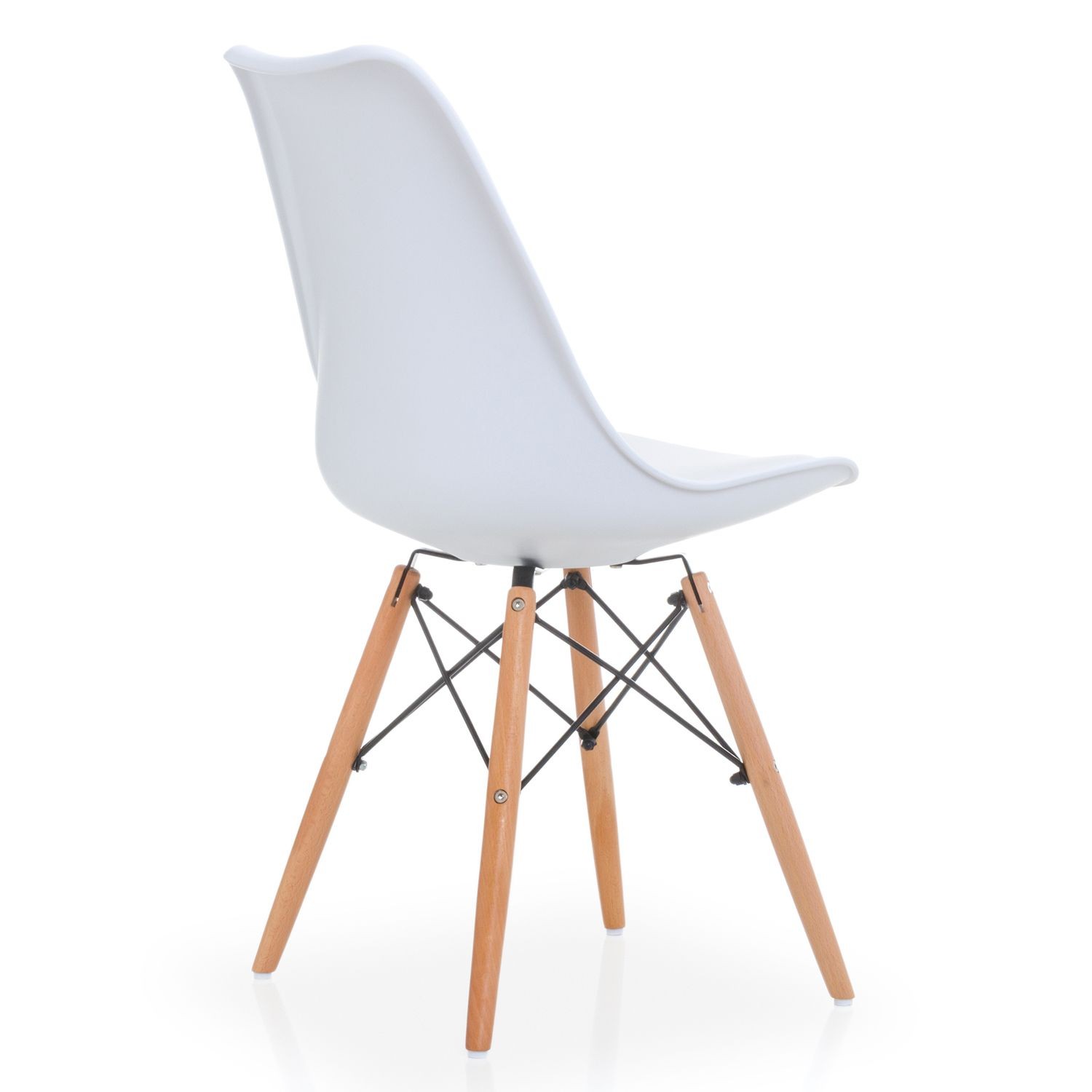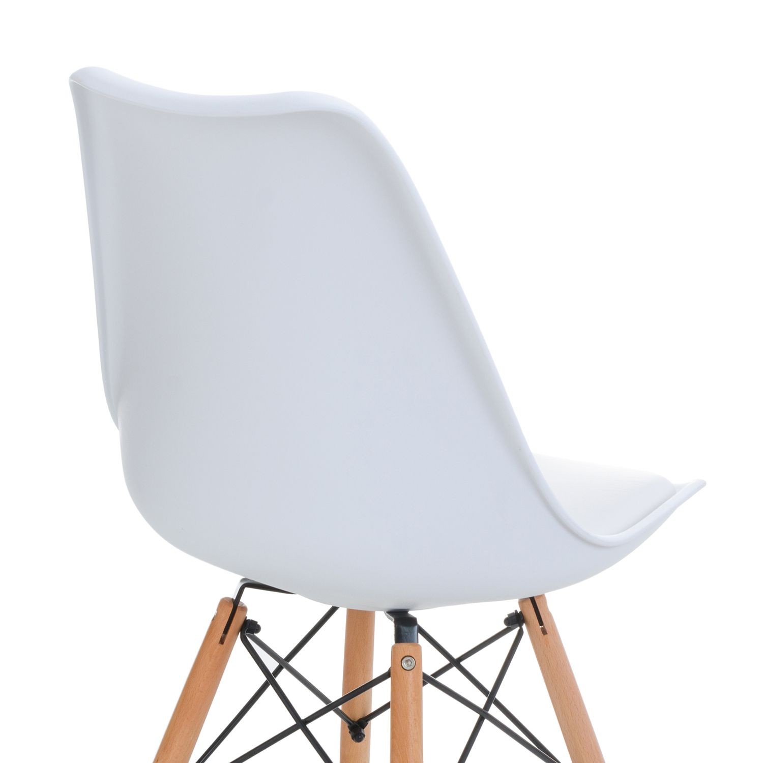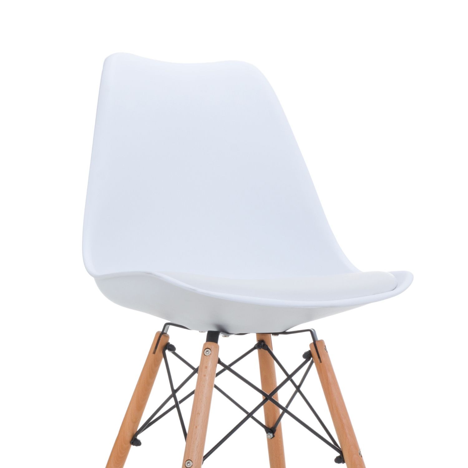 La silla TOW FLAK está fabricada en polipropileno blanco con cojín tapizado de polipiel de primeras calidades, del mismo color y tiene unos pies en forma de torre con una fuerte estructura en acero lacado negro inspirada en algunos diseños como la famosa silla DSW de Eames.