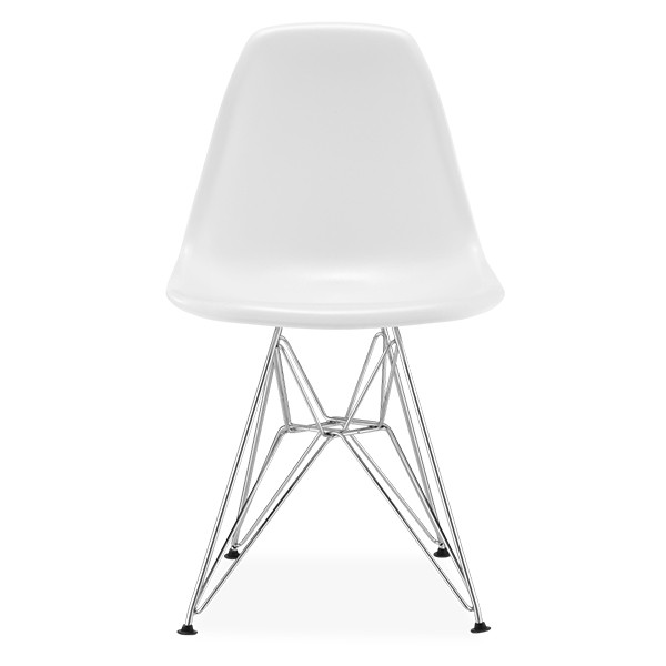Inspiración en la famosa silla DSR Style, diseño original y único de Charles & Ray Eames que crearon esta pieza como una silla de bajo coste a principios de la década de los 50. Las primeras sillas en fabricarse a modo industrial para satisfacer las necesidades de cualquier público. Un diseño proveniente de la silla DSW pero utilizando material de acero cromado reforzado en sus patas en vez de la madera.