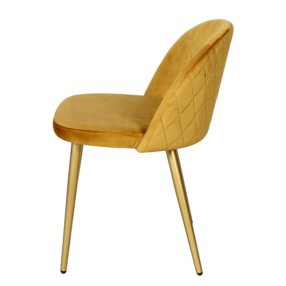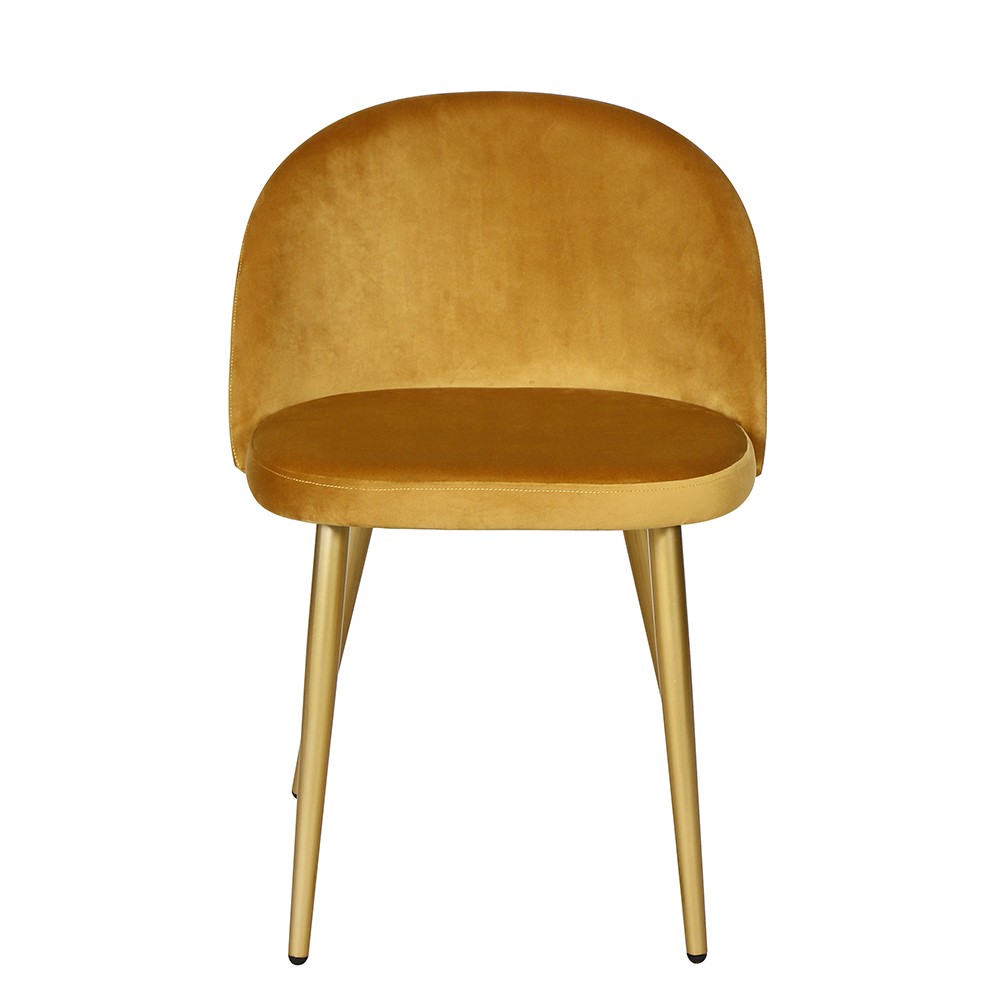 No te rompas más la cabeza, con la silla de comedor ZAGORA, al más puro estilo Velvet, obtendrás todo lo que precisas. Y es que su tapizado de asiento y respaldo consta de terciopelo en precioso color dorado, ofreciéndote una suavidad extrema y una gran comodidad.