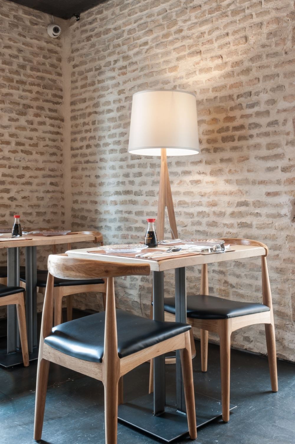 El respaldo y las patas están compuestas por madera de roble torneada y barnizada que da ese toque pulido e interesante.