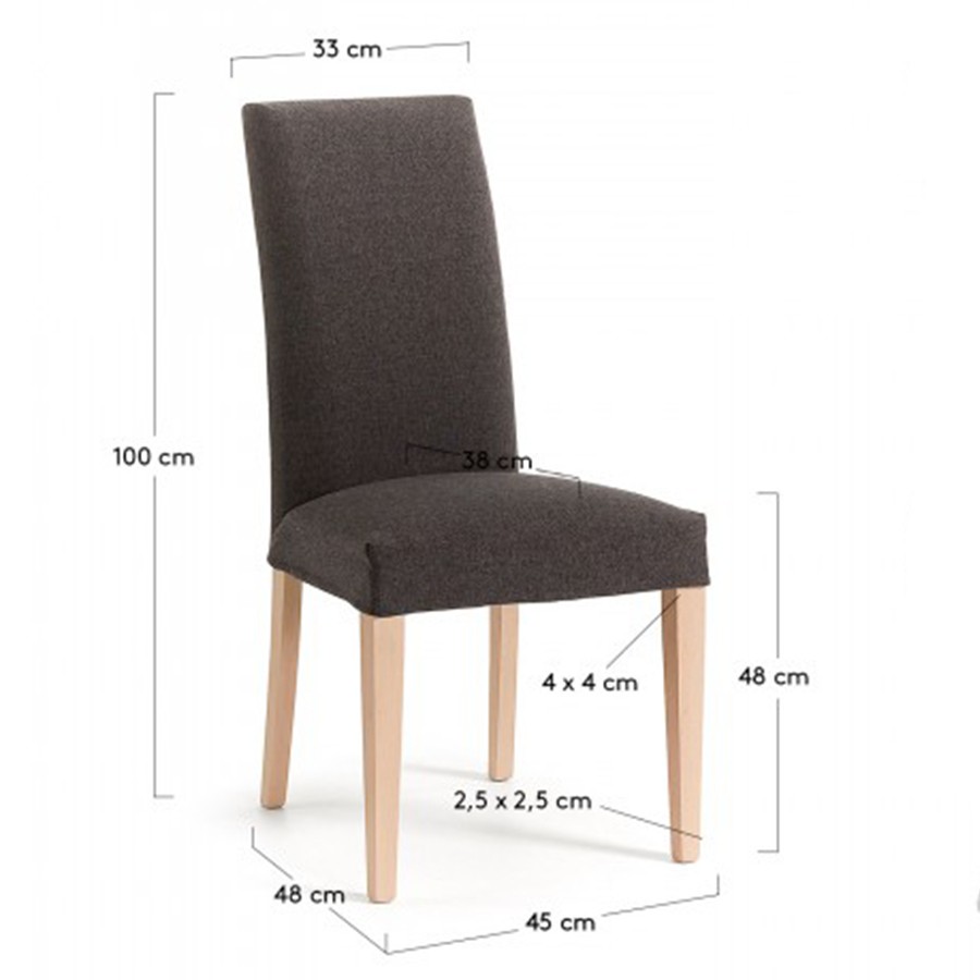 El grafito es un color que se asemeja al negro y que es ideal para personas discretas que deseen amueblar el salón o el comedor del hogar. También es perfecto para negocios. Así que la silla de comedor CUZZI es una estupenda opción, tapizada en tejido Varese, tratado además para evitar que se manche con facilidad. Este tejido es desenfundable. Eso hace que puedas lavarlo de forma fácil y sencilla en tu hogar. Para acompañar esta estructura que acabamos de describir, encontramos cuatro patas de madera en el color natural del propio material y que proporcionan la firmeza y estabilidad necesaria. Por otro lado, como se puede ver en las imágenes, el respaldo es más alto de lo habitual. Eso permite que la espalda de la persona que tome asiento quede perfectamente apoyada, así pues, la sensación de comodidad sea mayor. Disponible en más colores y acabados.