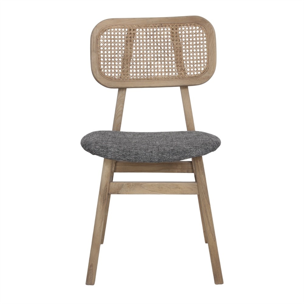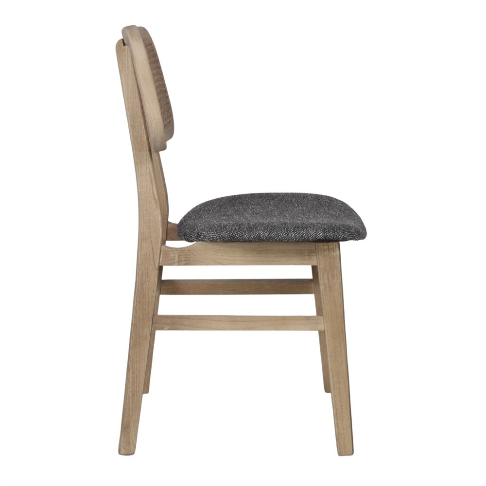 SILLA DE COMEDOR EN MADERA DE OLMO, ENEA NATURAL Y TEJIDO COLOR GRIS