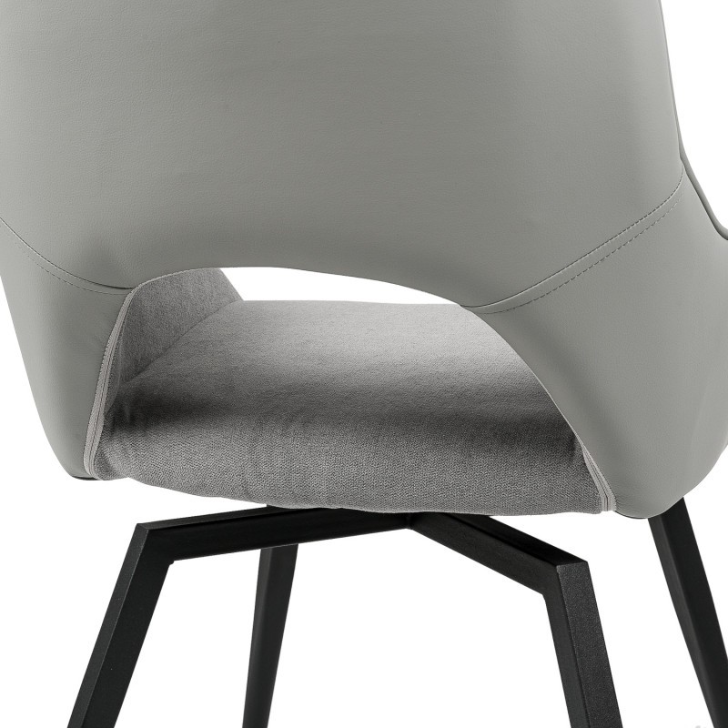 Silla de comedor en tejido y polipiel gris claro, metal negro.