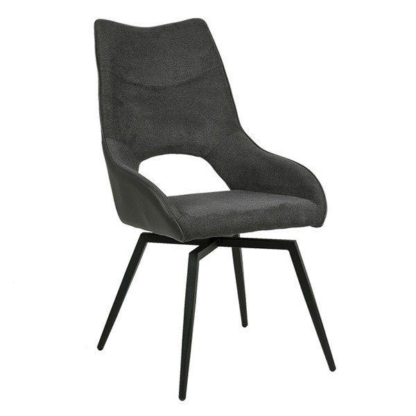 Silla de comedor en tejido y polipiel gris claro, metal negro.