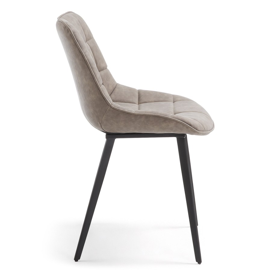 Silla de comedor en polipiel gris y metal negro