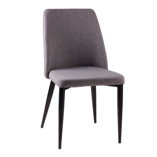 Una silla ideal para hogares, y especialmente tanto para cocinas así como salones y comedores. Su diseño lo forma un asiento y un respaldo, ambos de pieza única, tapizado en tejido de color gris en su tonalidad más clara. Y todo ello se sostiene gracias a cuatro patas, diseñadas en metal con un acabado en color negro.
