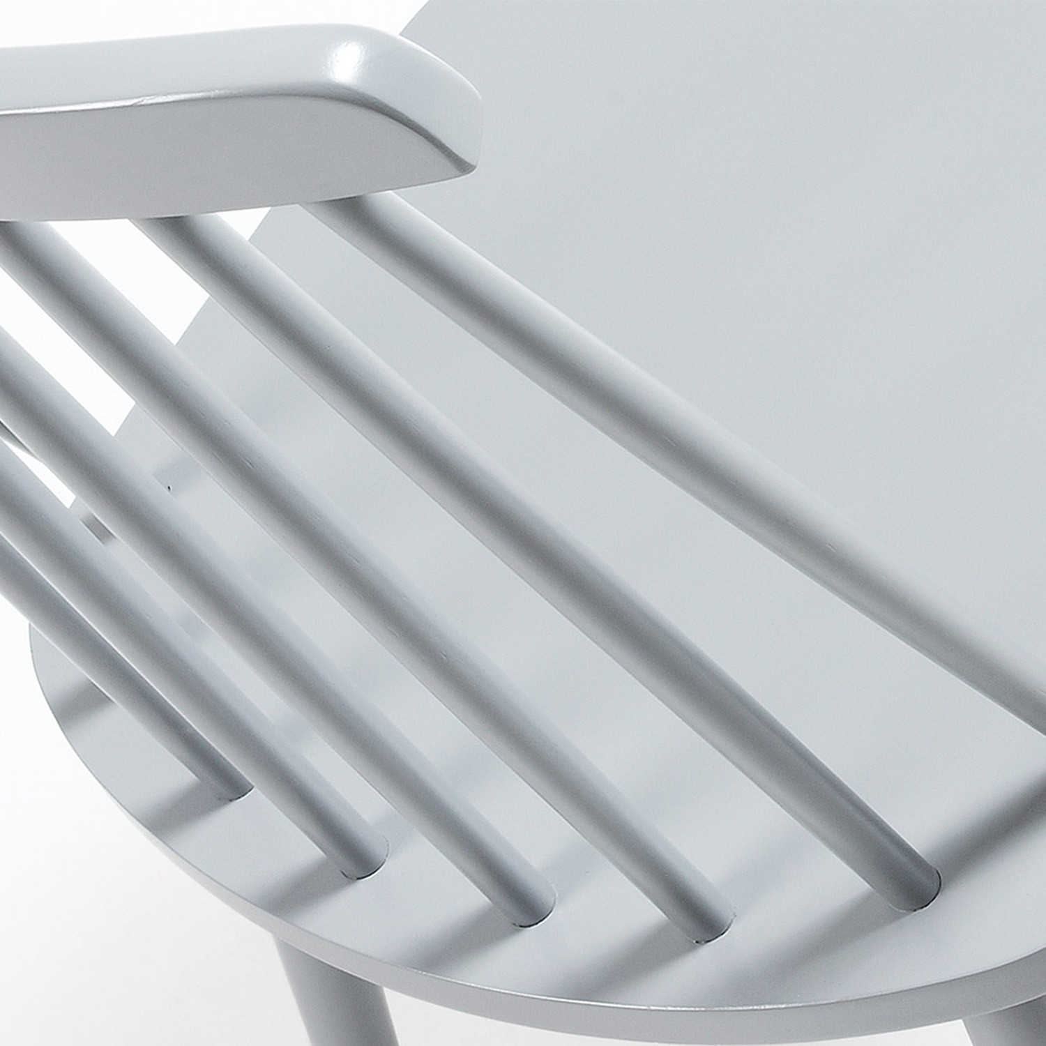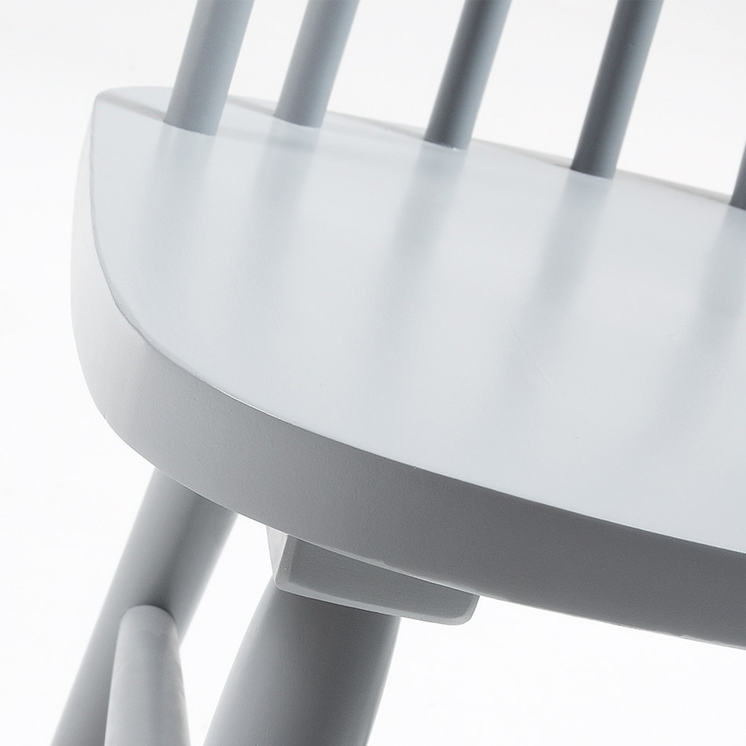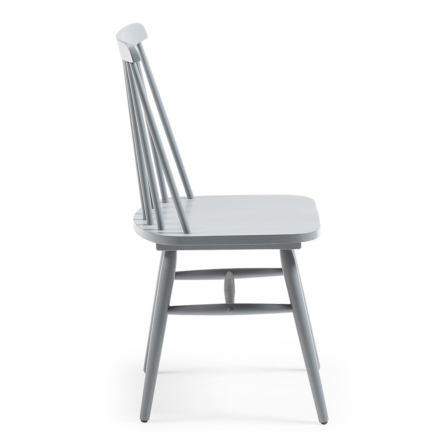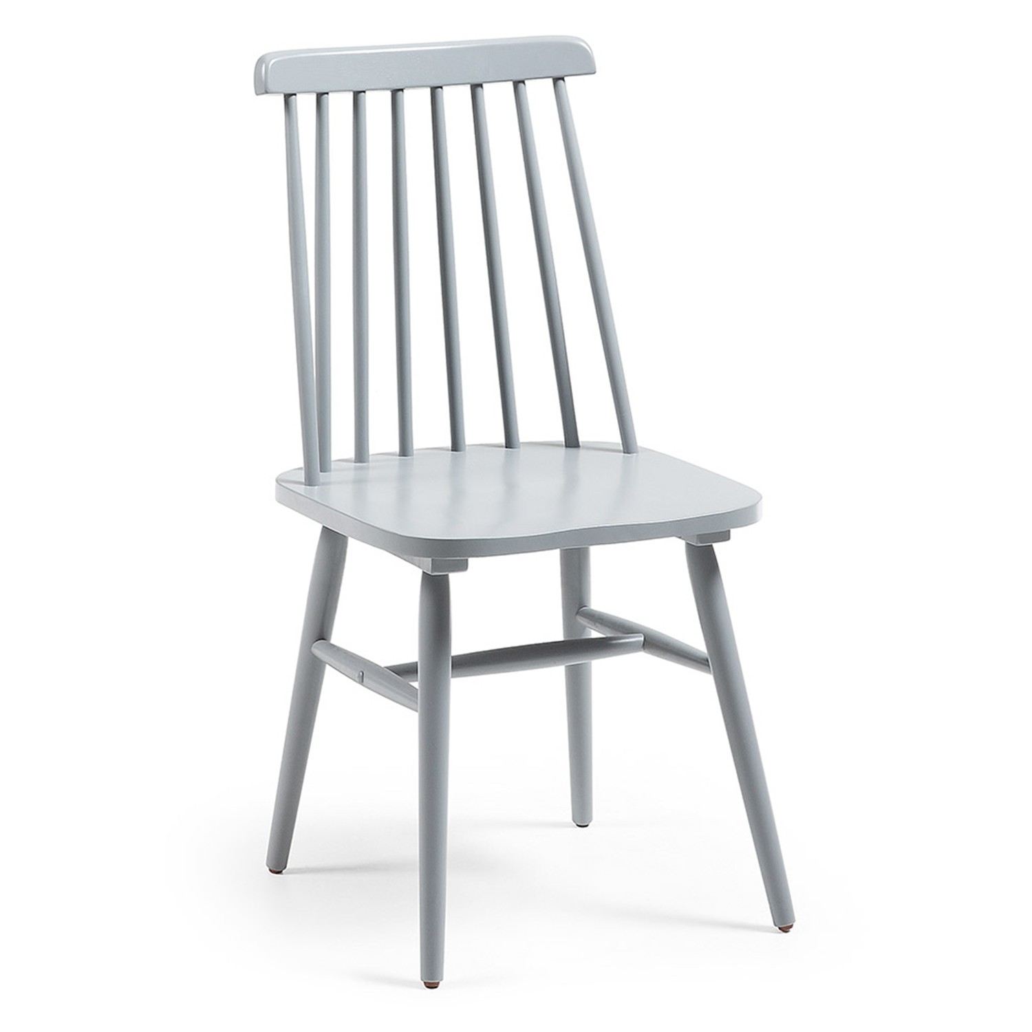 Fabricada en madera de caucho maciza en un bonito color gris claro lacado, será una silla indispensable en tu salón, cocina, comedor e incluso en tus negocios.