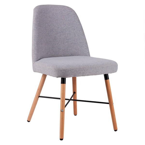 Hablamos de la silla de comedor ALIDAL, presentada en tejido de color gris oscuro. Dispone de cuatro patas realizadas en madera de haya en acabado natural, reforzadas mediante una cruceta de metal en color negro que le proporciona una mayor estabilidad. Estas patas, además, pueden ser reguladas en altura, adaptándolas según tus propias necesidades.