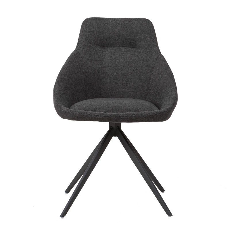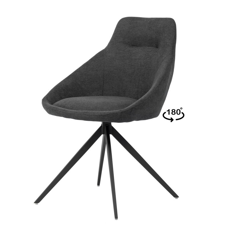 Nos encanta la silla de comedor CINCINNATI. Aparentemente parece una silla más, ¿verdad?. Pero a nosotros que nos encanta probarlas, te aseguramos que en pocas hemos encontrado la comodidad que esta nos ha ofrecido. Combina un asiento y un respaldo de pieza única, tapizado en tejido acabado en color gris oscuro, con cuatro patas de metal negro, de forma piramidal, las cuales ofrecen una gran resistencia. Nos fijamos especialmente en el diseño del respaldo, siendo más ancho en su parte inferior para estrecharse en la superior. Con ello conseguimos que la zona de la espalda quede perfectamente resguardada, obteniendo una gran sensación de comodidad. Si a esto le sumamos la comodidad del asiento, que cuenta con un sistema que la hace una silla giratoria 180º con retorno, tenemos la silla perfecta. Una pieza que no debe faltar en salones o comedores de hogares. No importa el estilo decorativo que utilices, la silla de comedor CINCINNATI combina bien con todo. Para terminar te diremos que puedes dar un toque de color a tu vivienda con los acabados en color azul, rojo, mostaza o gris claro. Todos ellos vas a poder encontrarlos en nuestro amplio catálogo.
