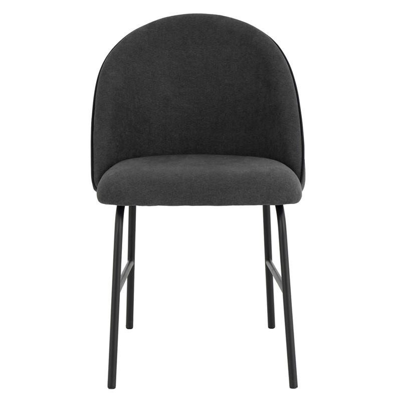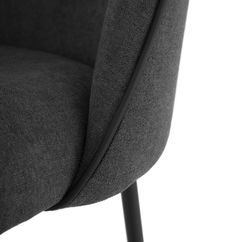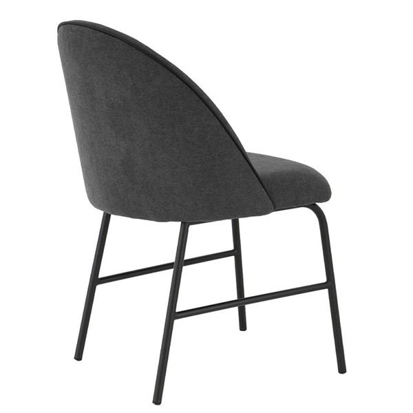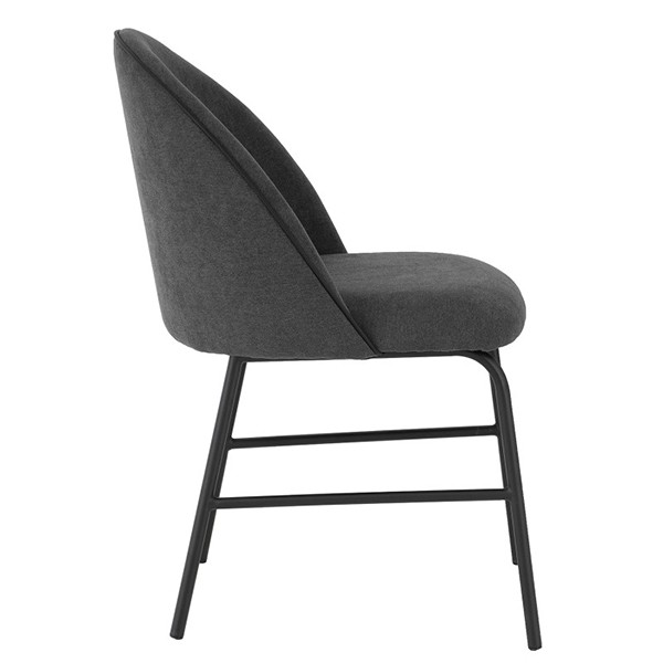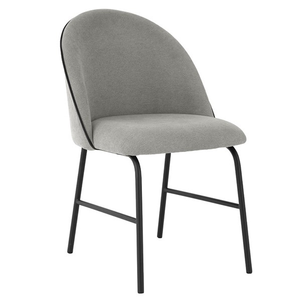 Y esa silla que queremos que te sorprenda es la silla de comedor FREYJA. De líneas curvadas y redondeadas, elegante y cómoda, tapizada en tejido de color gris oscuro. Le acompañan cuatro patas en metal de forma tubular lacadas en negro.