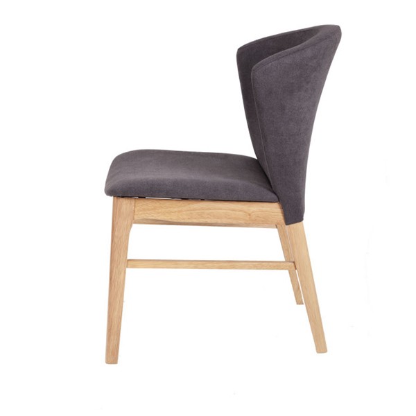 Y la silla de comedor LUMIERE es uno de esos modelos, puesto que tiene cabida tanto en un salón o comedor de una vivienda, como en cualquier negocio de restauración y hostelería. Consta de una estructura formada por cuatro patas realizadas en madera de hevea en acabado color roble, reforzadas entre si para una mayor seguridad, y encargadas de sostener un asiento y un respaldo de pieza única, tapizado en tejido de color gris oscuro.