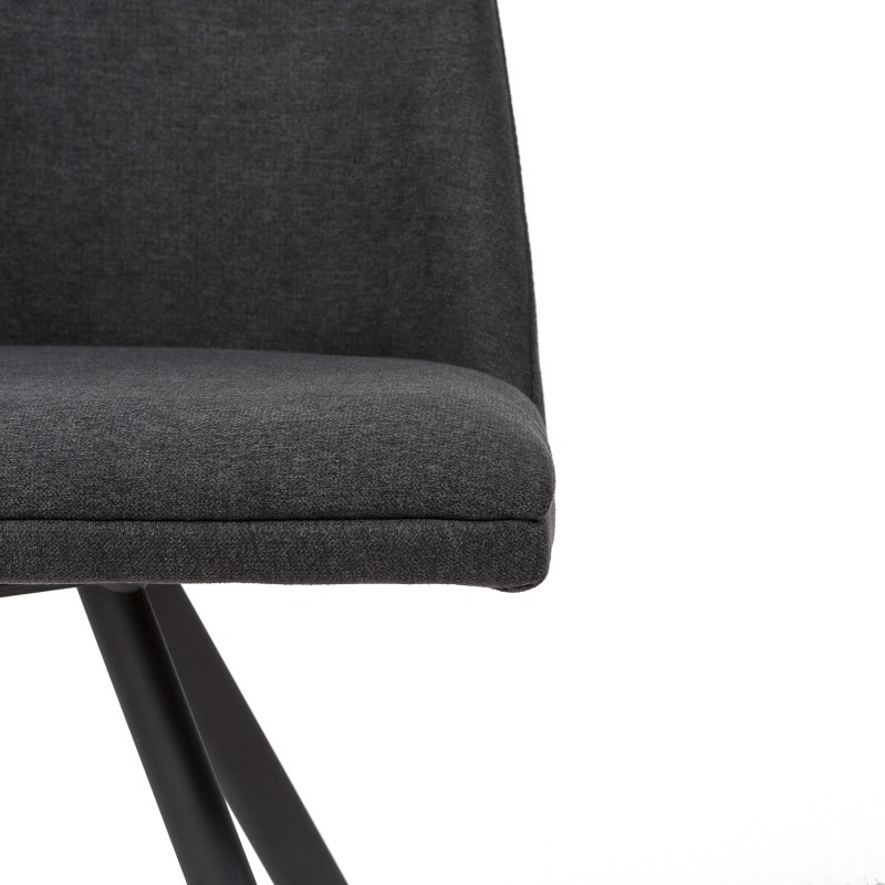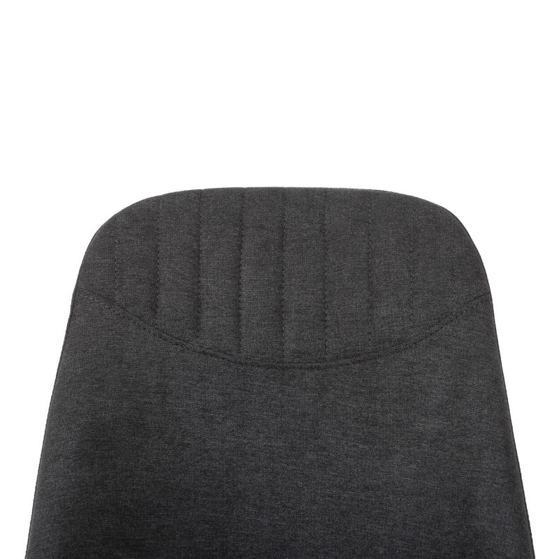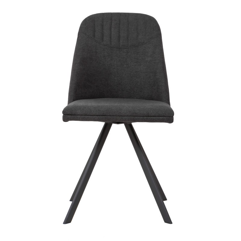 Consta de un asiento y un respaldo tapizado en tejido acabado en color gris, con posibilidad de girar nuestro asiento 180 grados así como mecanismo de retorno. Le acompañan cuatro patas en forma piramidal diseñadas en metal acabado en color negro, y con las que se consiguen una gran estabilidad.